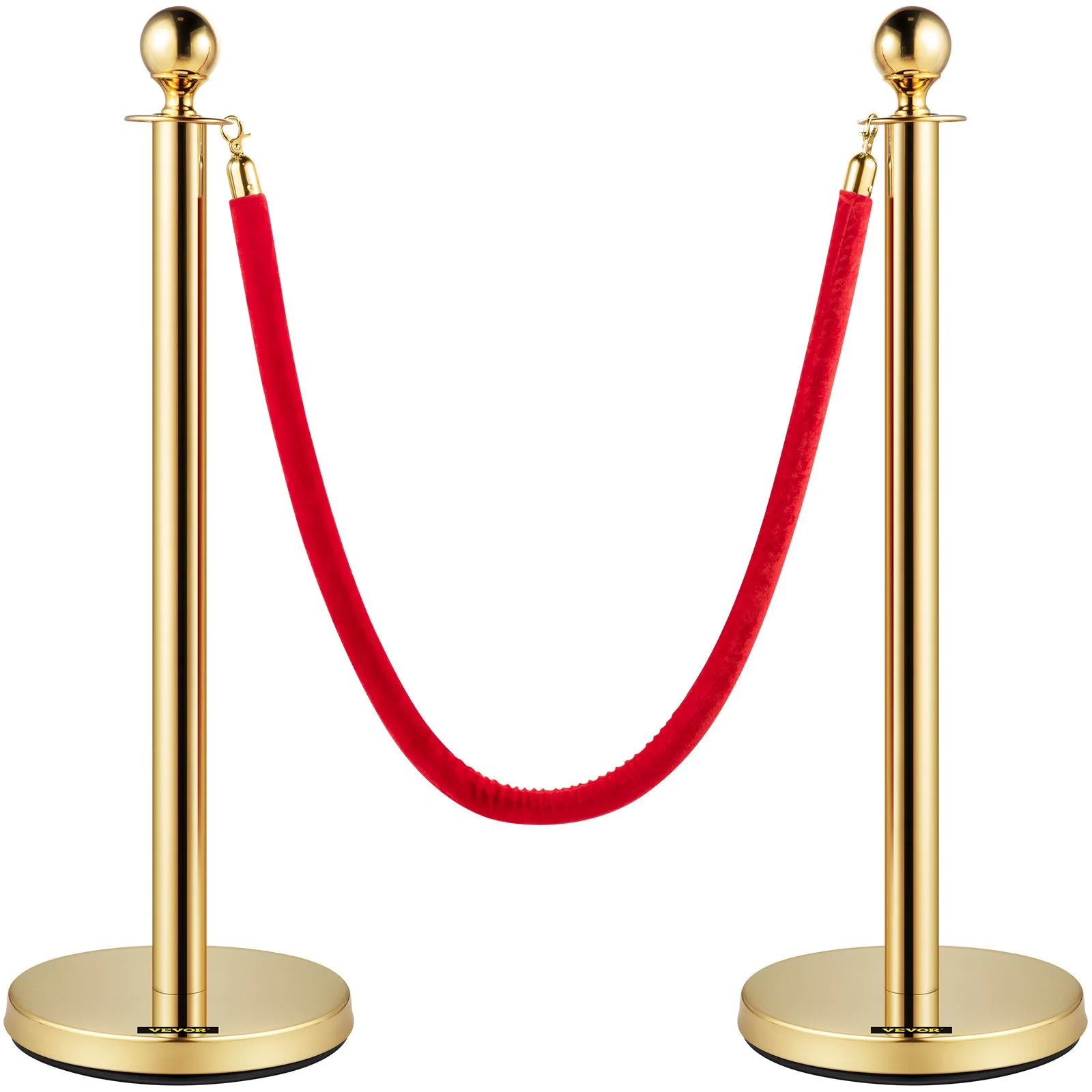 Our crowd control barrier is equipped with two red velvet ropes that are eye-catching. The elegant rope is made of flannel material that is thick, not easy to break. Besides, the rope measures 5 ft/1.5 m long, providing a larger area for your various demands.