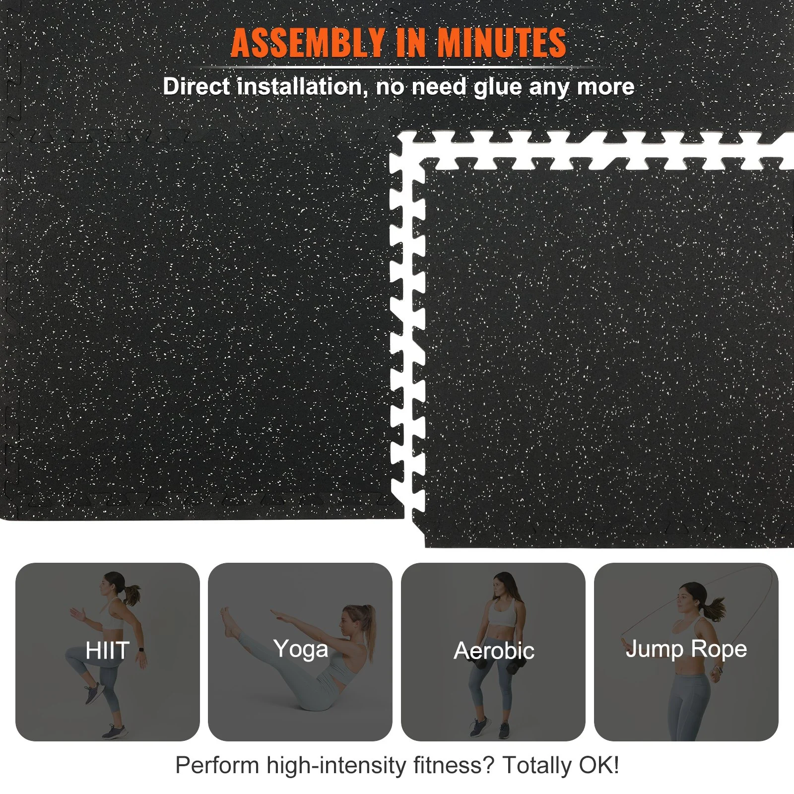 The mat is 0.56 in thick, featuring a top layer made of high-quality rubber, ensuring excellent slip resistance. This rubber interlocking floor tiles design effectively absorbs shock and rebounds while providing enough grip for safe workouts.