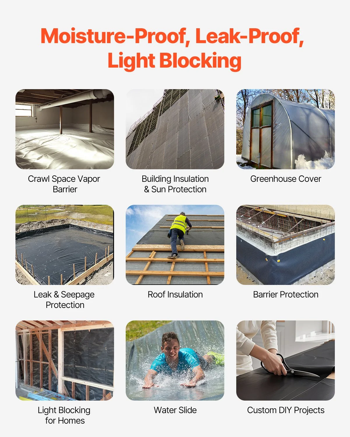 This crawl space vapor barrier is ideal for weed control, barrier protection, thermal insulation, moisture and seepage resistance, and light-blocking entertainment setups. It serves well in both agricultural and construction settings.