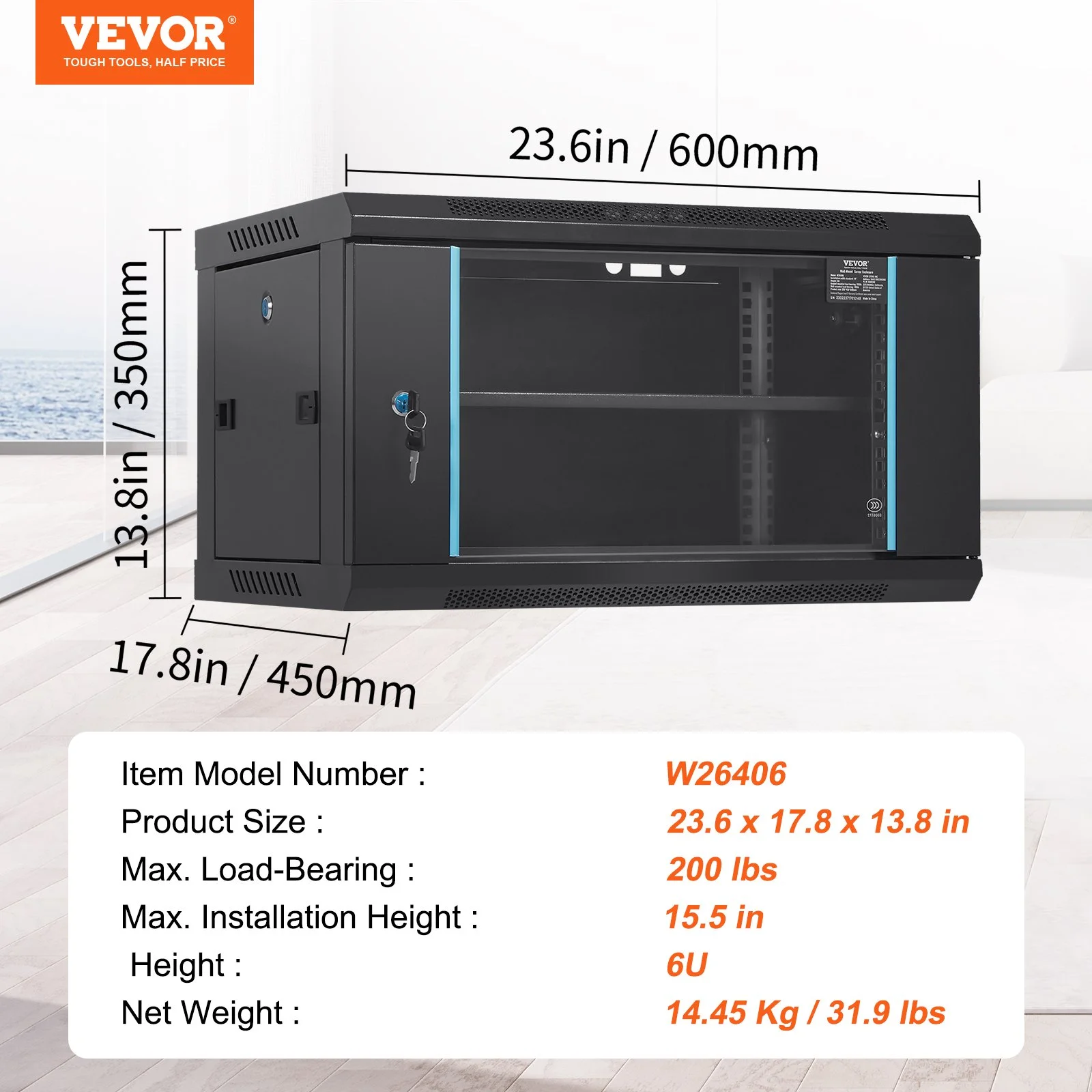 Robust welded frame construction for durability and long service life. With 100 lbs wall-mounted load capacity and 200 lbs ground-mounted load capacity, you can place multiple devices in the server rack cabinet as needed.
