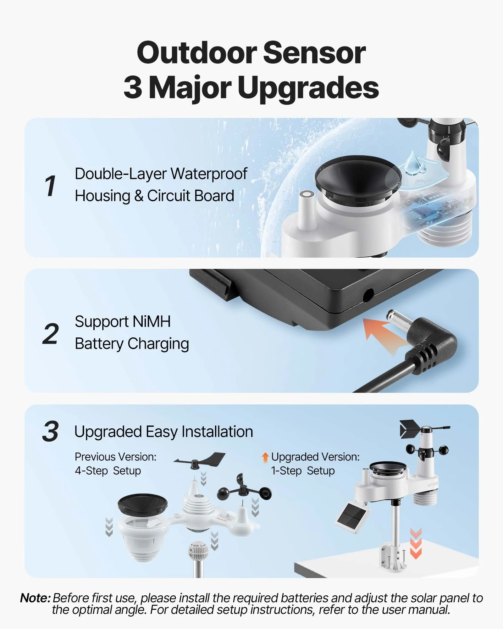 Sync our indoor outdoor weather station with the Smart Life app to view, store, analyze, and share real-time weather data from your personal weather station anywhere. Note: Support 2.4GHz Wi-Fi only, 5GHz is not supported