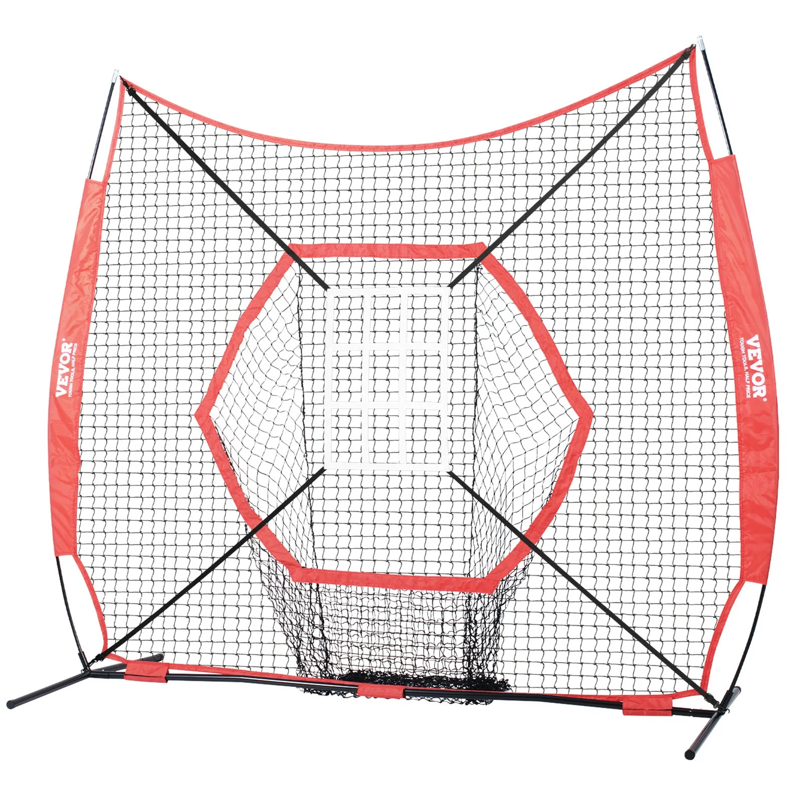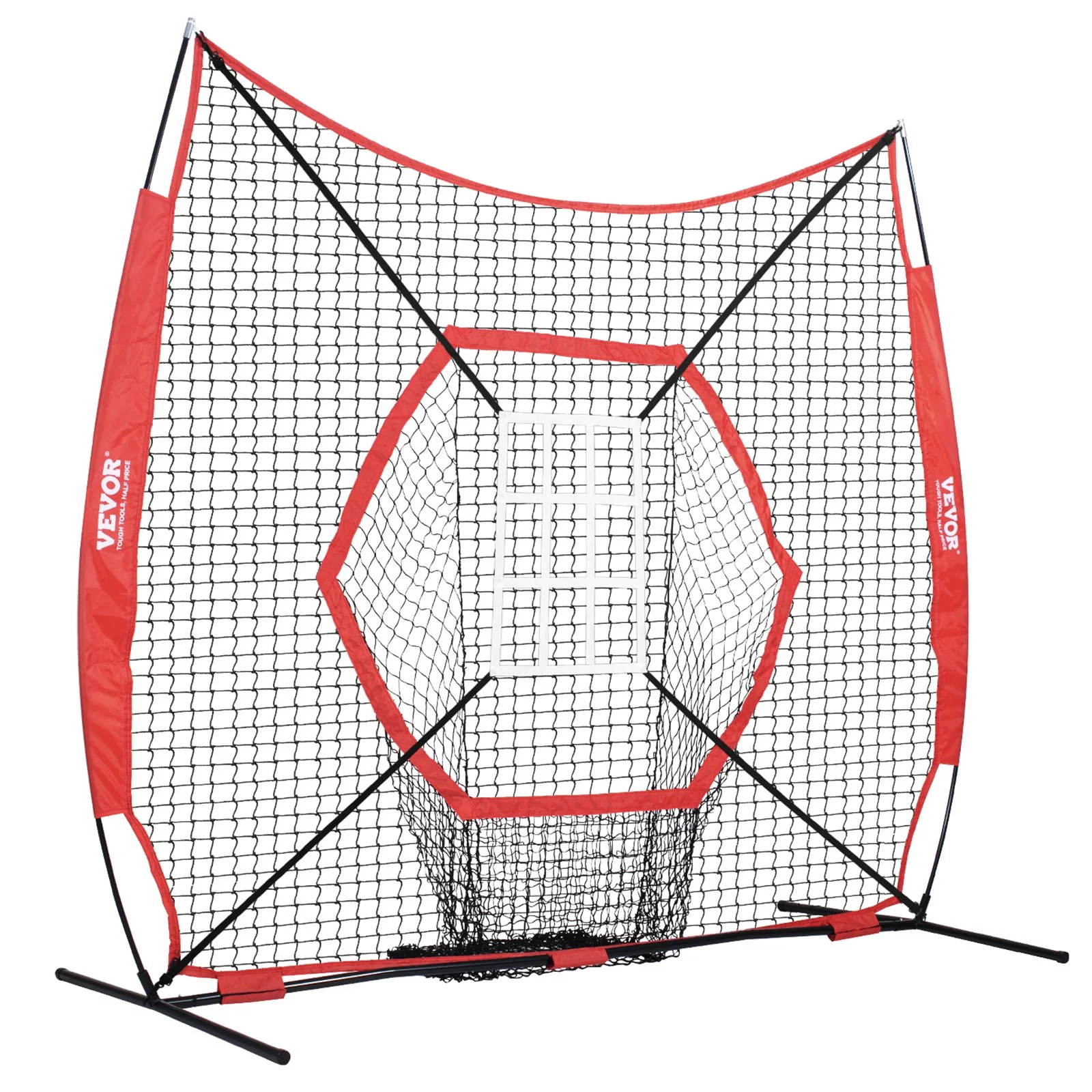 Our 7x7ft baseball softball practice net is tailored for athletes or professional enthusiasts. The six-section net design distinctly sets it apart from standard models. Apart from the basic net and support frame, it comes with a square and a nine-grid target frame, four anti-tip ground stakes, and a dedicated storage bag, making tidying up a breeze.