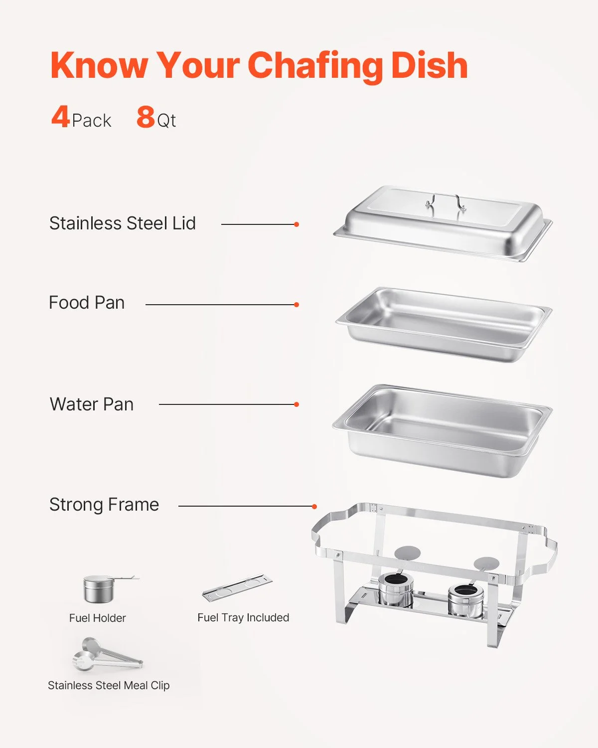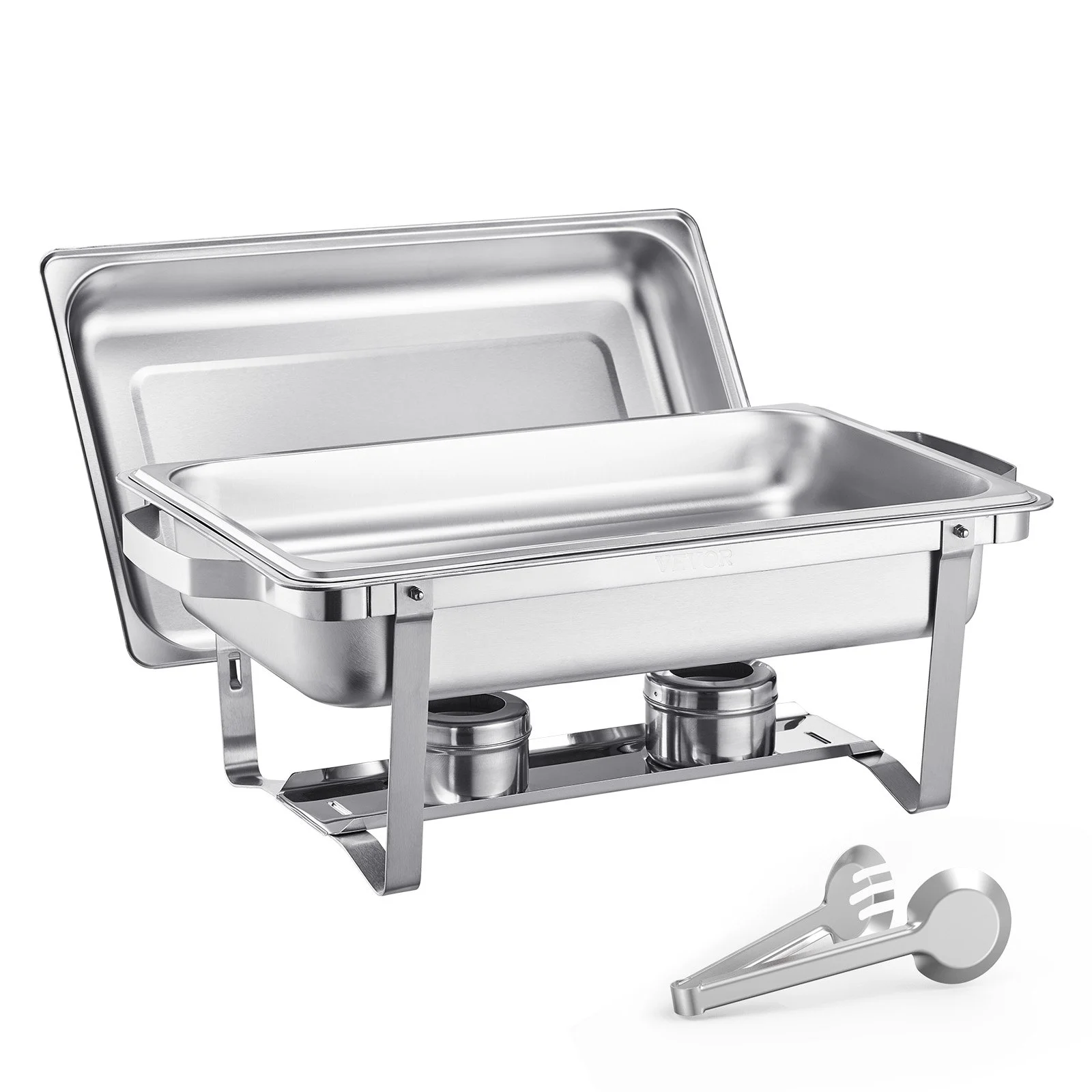 This chafing dish buffet set features an easy-to-assemble, folding design that saves valuable storage space. Its compact nature ensures that it can be conveniently stored without taking up much room