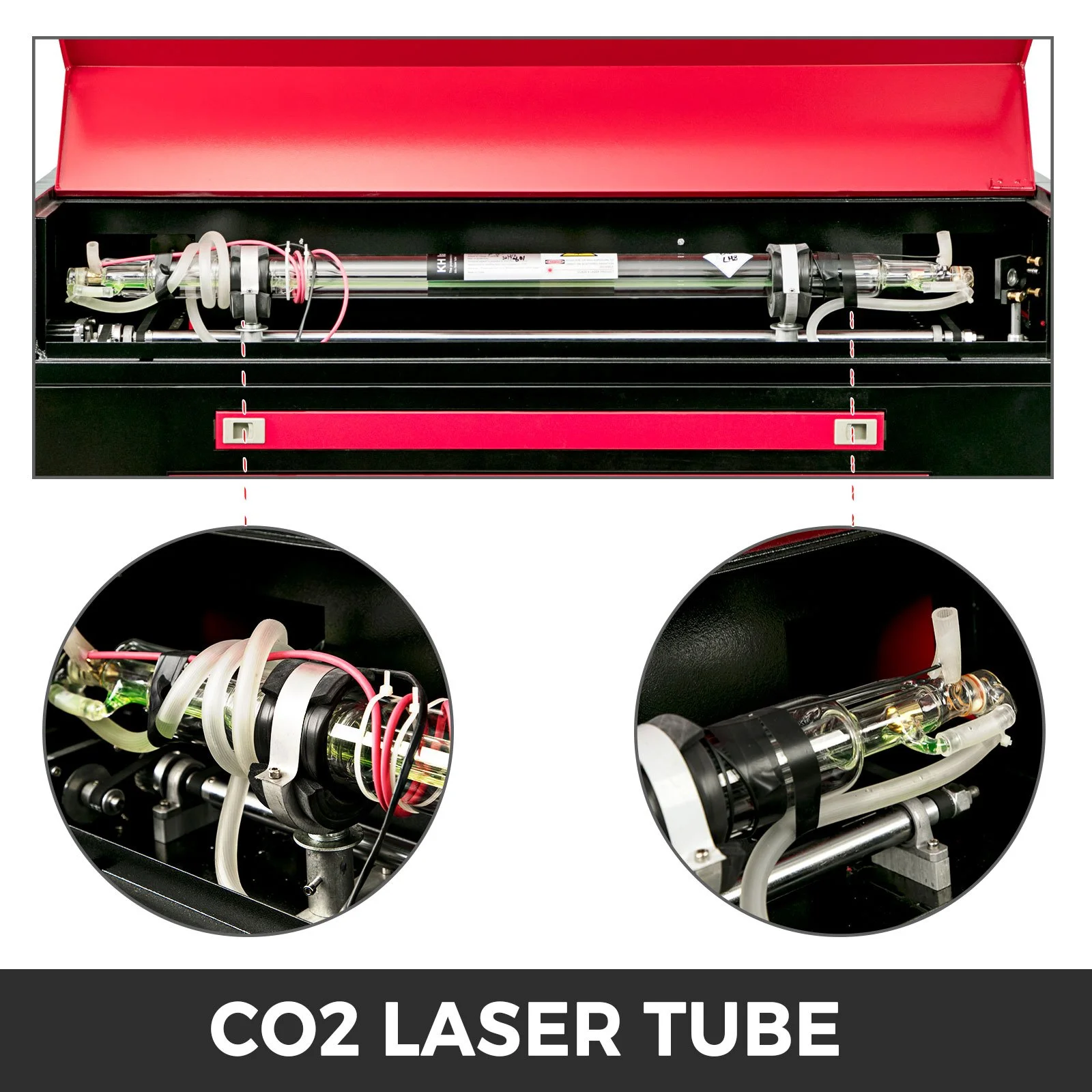 Adopts CO2 glass sealed laser tube, lifetime is up to 2000-4000 hours. Features 80W premium laser head and international standard laser power supply. Engraving Area: 28"x20" / 70 x 50 cm.