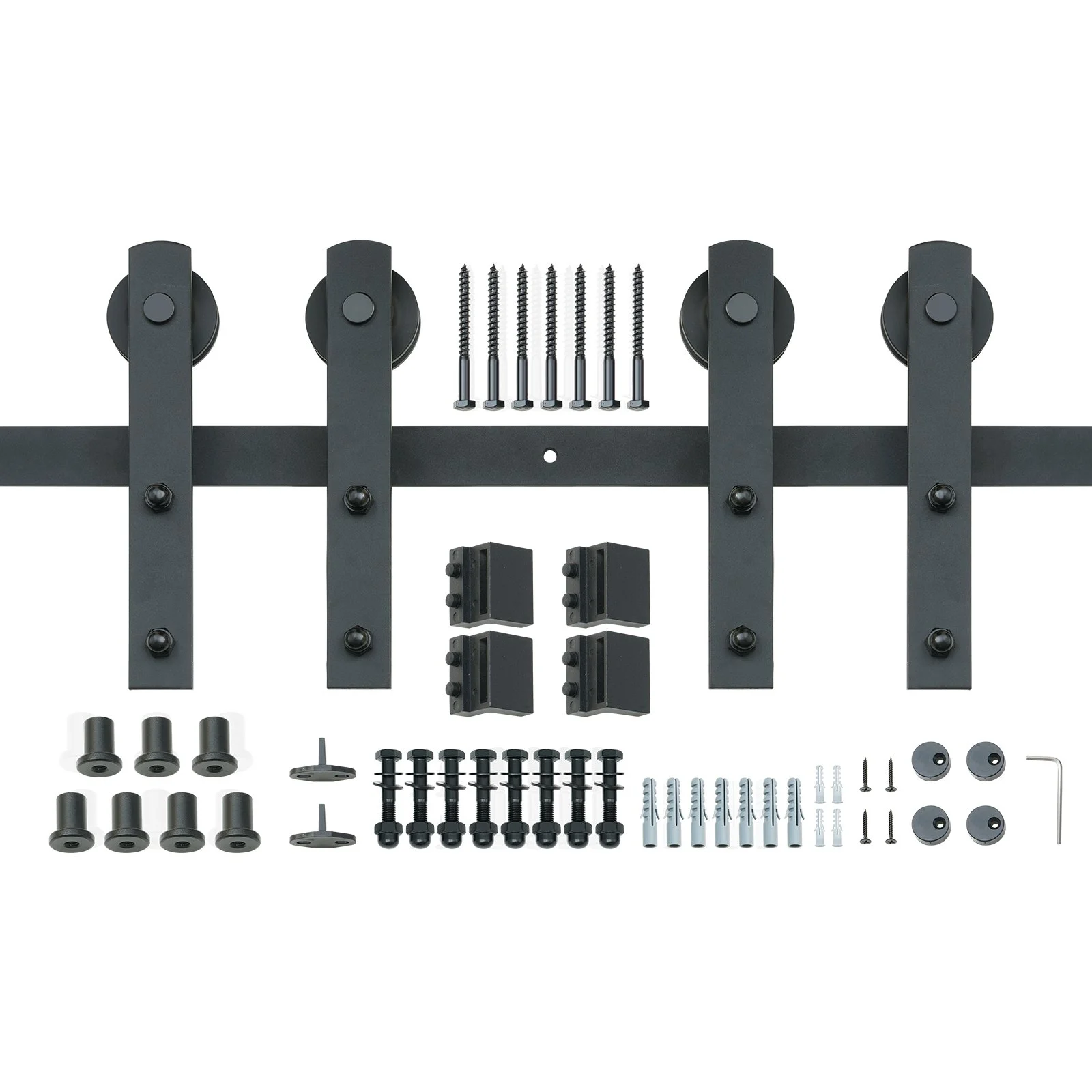 The barn door track kit for double doors comes with all the necessary hardware and detailed instructions to make installation a breeze. The barn door hardware kit includes: 2 x 4FT Sliding Barn Door Tracks, 4 x I Shape Hangers, 7 x Plastic Washers, 4 x Anti-jumpers, 4 x Door Stoppers, Installation Manual and Other Assembly Hardware. (Attention: Hardware only, barn door is not included.)
