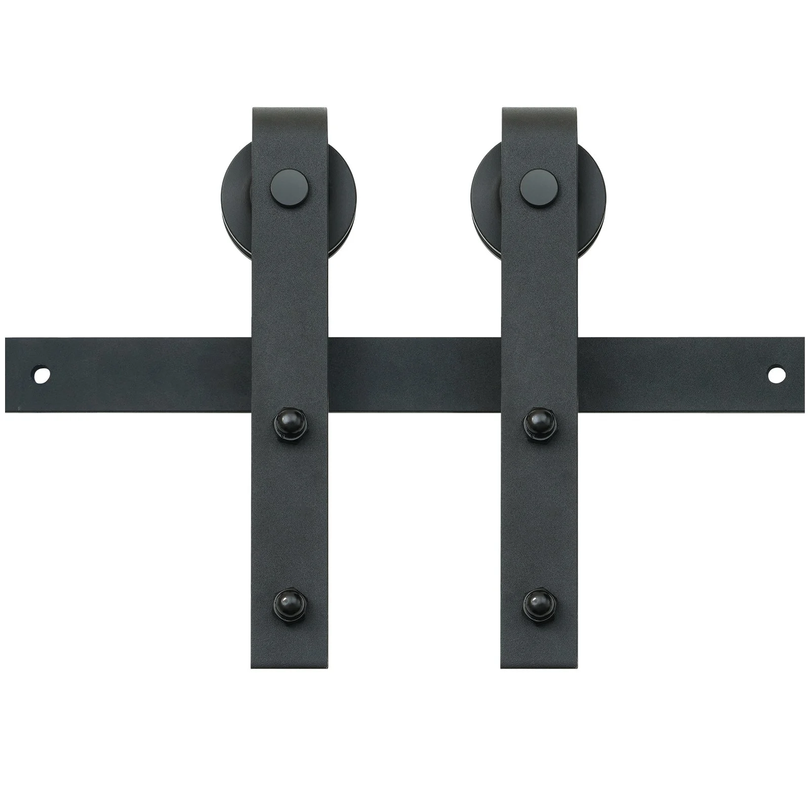 Our sliding barn door hardware is made of solid carbon steel with fine black powder coated surface. It delivers excellent anti-corrosion performance for years of attractiveness and durability. This 8ft barn door track and hardware kit is suitable for single door up to 4.3FT wide and weighing up to 330lbs, perfect for most doors. Fit Door Width: 3.7-4.3 FT; Fit Door Thickness: 1.3 "-1.8".