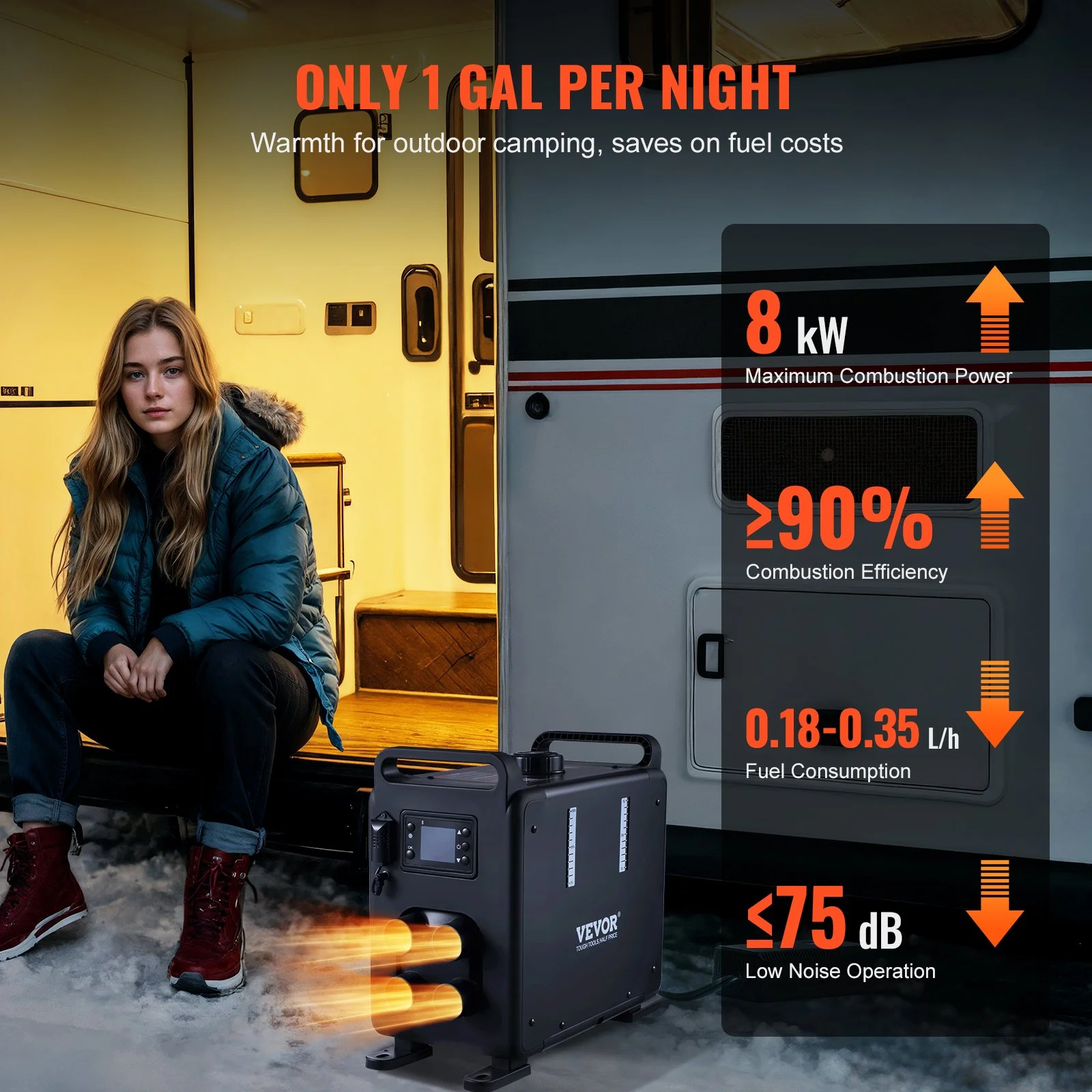 This 8kw diesel heater is designed with a premium muffler and fuel pump to minimize noise, operating at ≤75dB. Enjoy a warm, uninterrupted sleep during RV stays or outdoor camping, free from the cold.