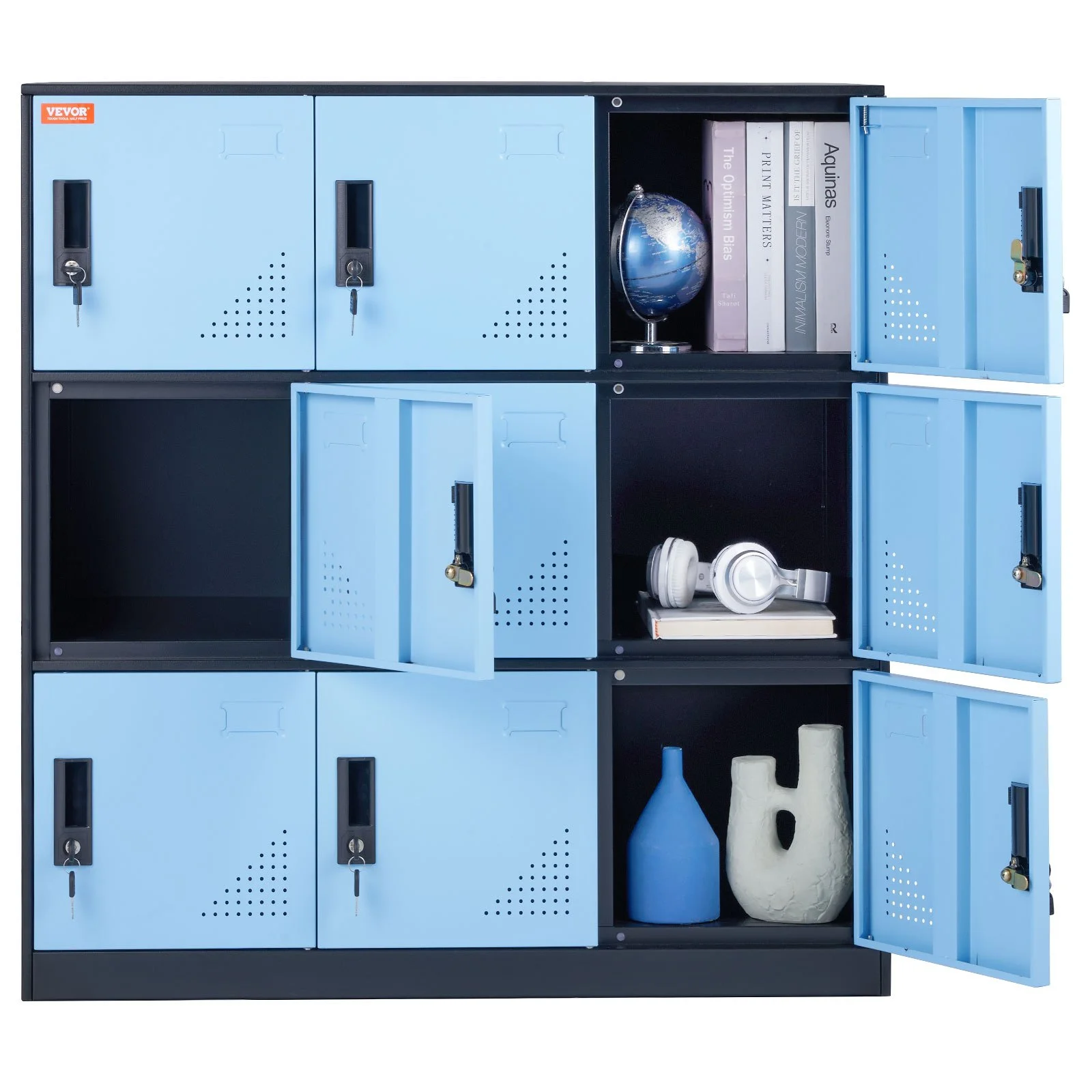 Maximize your storage space and stay organized with this 9-compartment metal cabinet! Measuring 35.4'' x 17.7'' x 37'', each compartment provides ample room for your items. Make the most of your storage with this partitioned solution.