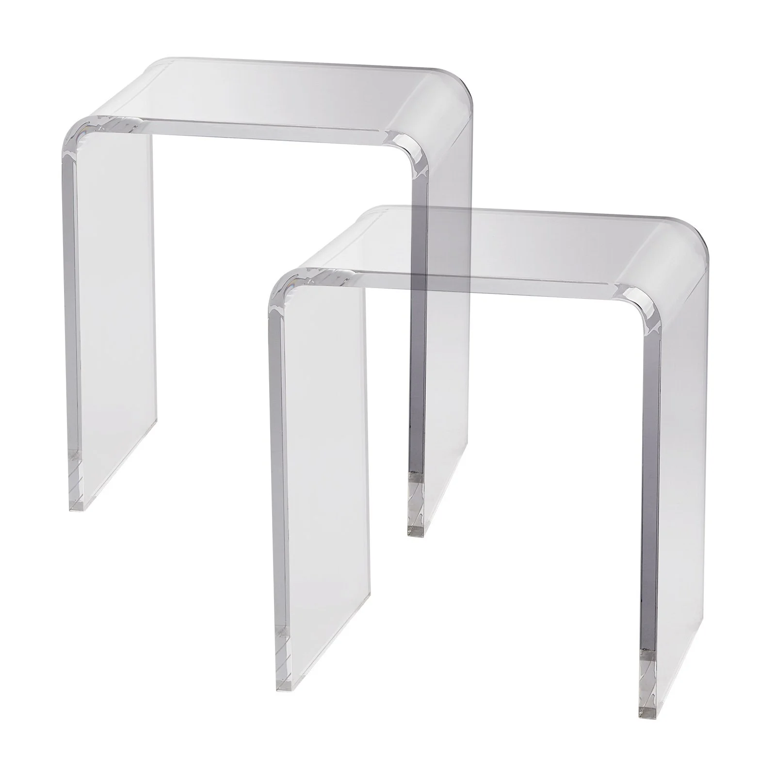 Here we provide two acrylic end tables with the dimension measuring 6.3x12x18.1 in/415x305x460 mm. They are not only provide storage for small items but also serves various functions such as displaying decorations and serving as a workstation. The smooth edges significantly reduce the risk of daily bumps and injuries.