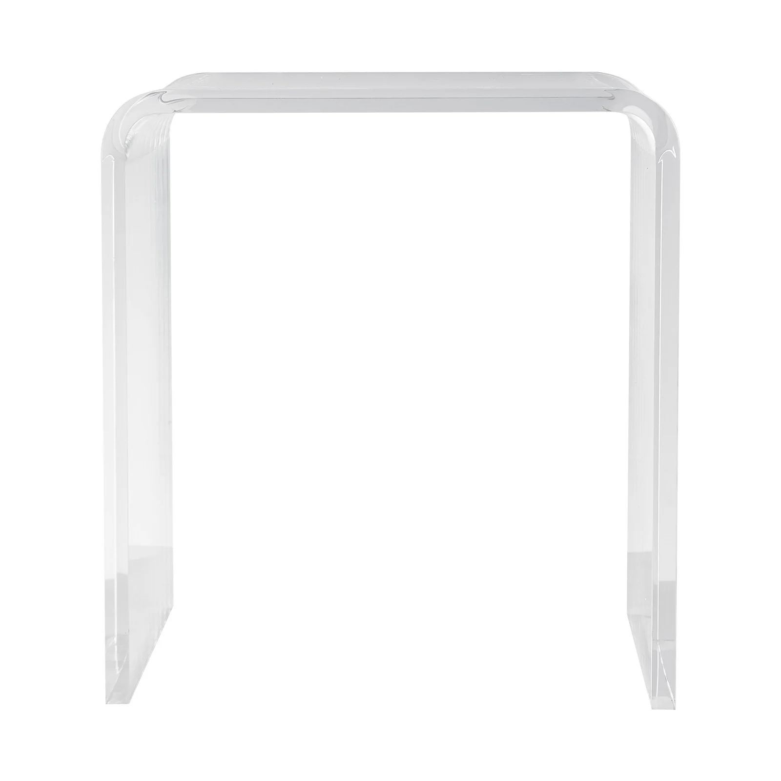 Crafted from 18 mm thick acrylic material, our clear acrylic side table offers superior impact resistance compared to ordinary tempered glass. It's long-lasting and provides peace of mind. (Note: Remove the protective film after installation. Avoid using alcohol and prolonged outdoor exposure.)