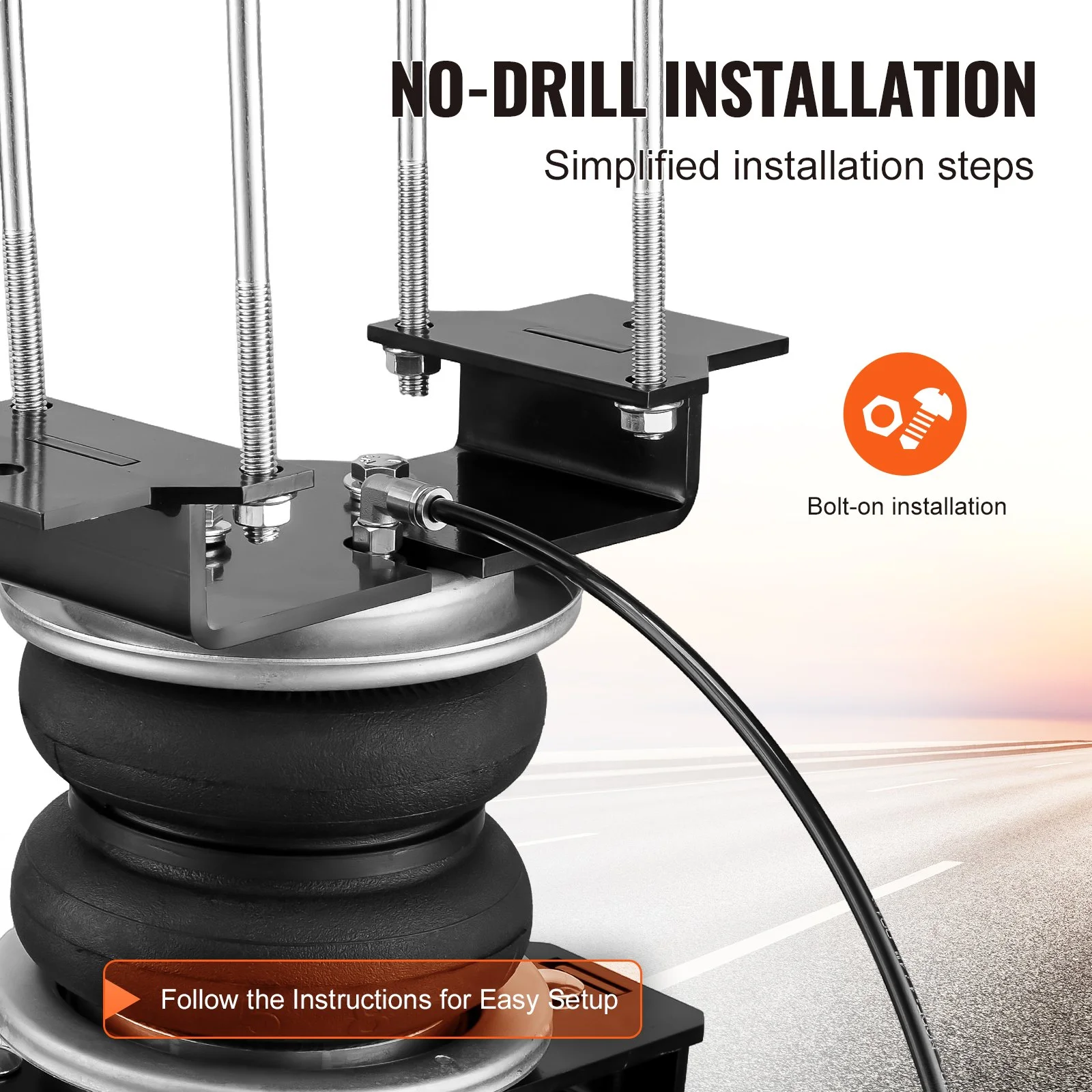 The air suspension bags feature a bolt-on installation, requiring no drilling or modifications. You can easily install them by following the instructions provided. After installation, regularly check the air pressure, inspect for gas leaks, and ensure all connections are secure to maintain the suspension system's optimal operation and safety.