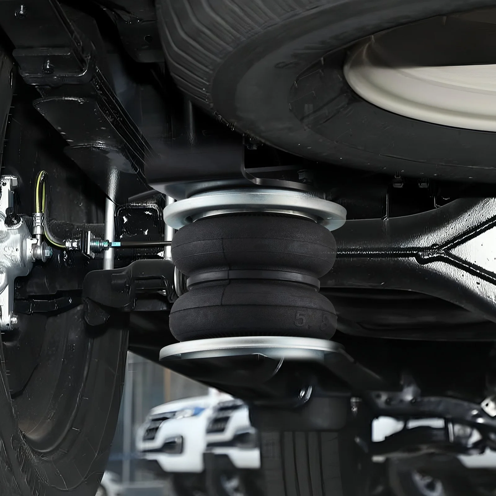 This air bag kit maximizes your vehicle's load capacity, stability, ride quality, and braking performance. Positioned between the axle and frame, it prevents contact and friction due to excessive load. It allows for height and suspension hardness adjustments by inflating or deflating the air bags, adapting to smooth or rough driving conditions.