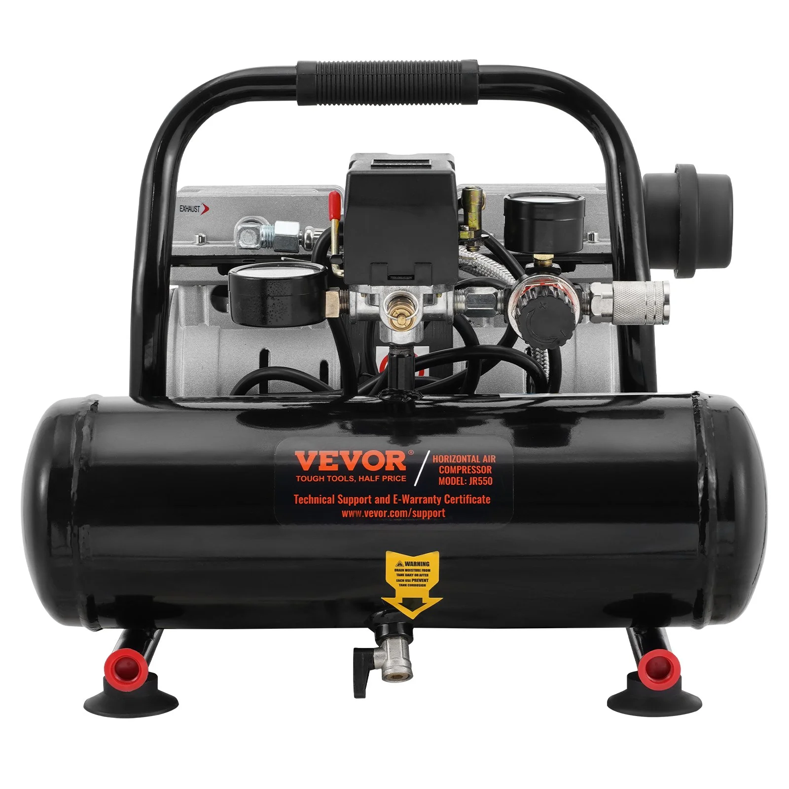 The air compressor tank is equipped with large cooling fan and automatic overheating protection to prevent damage. In addition, when the current or storage pressure is too high, the compressor will automatically shut off or provide pressure relief protection.