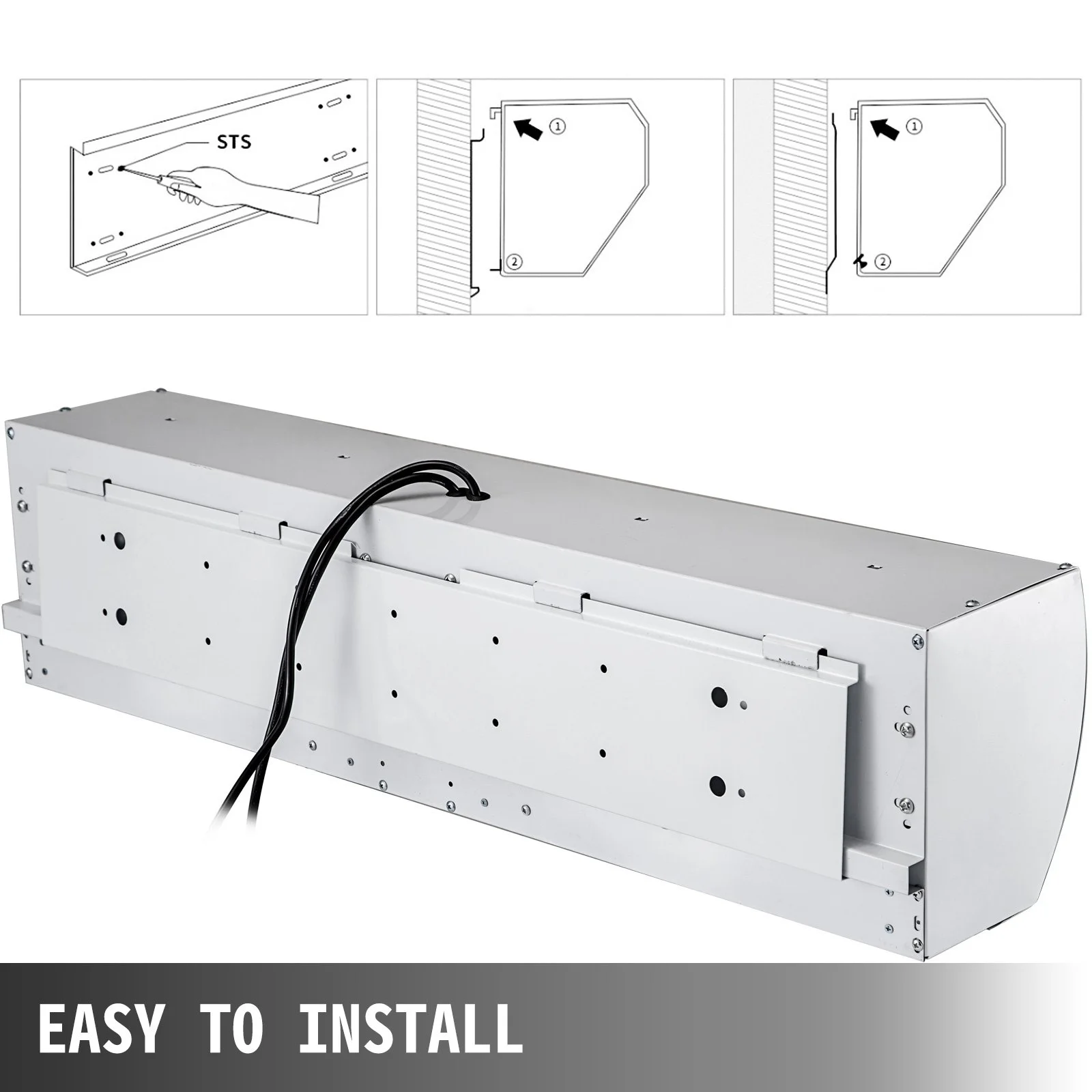 EASY INSTALLATION- This door air curtain comes with a mounting plate, featuring multiple pre-drilled holes for easy installation. This air curtain is suitable for the door with a height of 90.6" (2.3m).