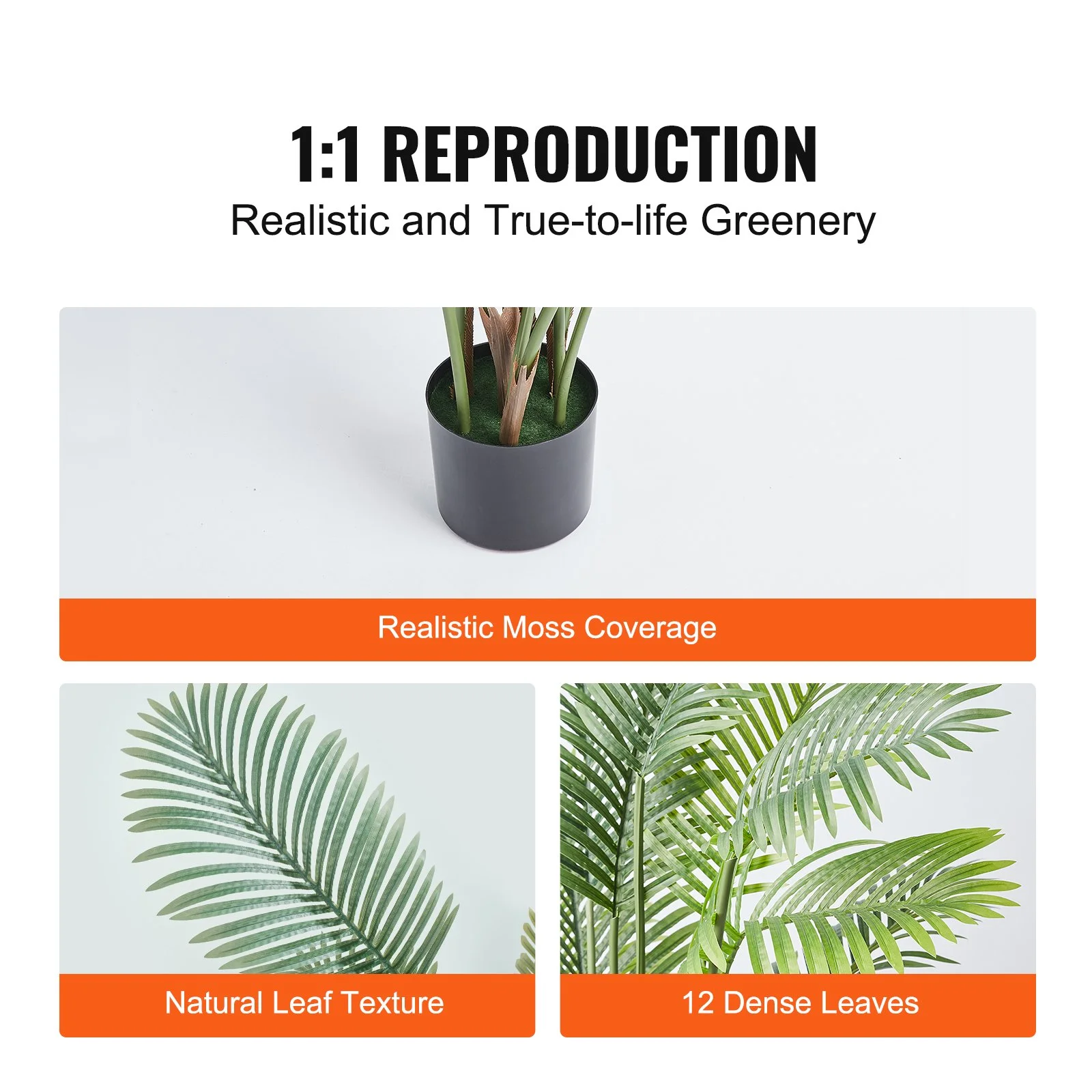 The fake plant is meticulously designed to mimic the intricate details of natural trees. The natural patterns of the trunk and leaves are faithfully reproduced, complete with moss-covered surfaces on the potting soil. The lush green foliage and lifelike texture make it nearly impossible to distinguish these artificial trees from real ones, both in appearance and touch.