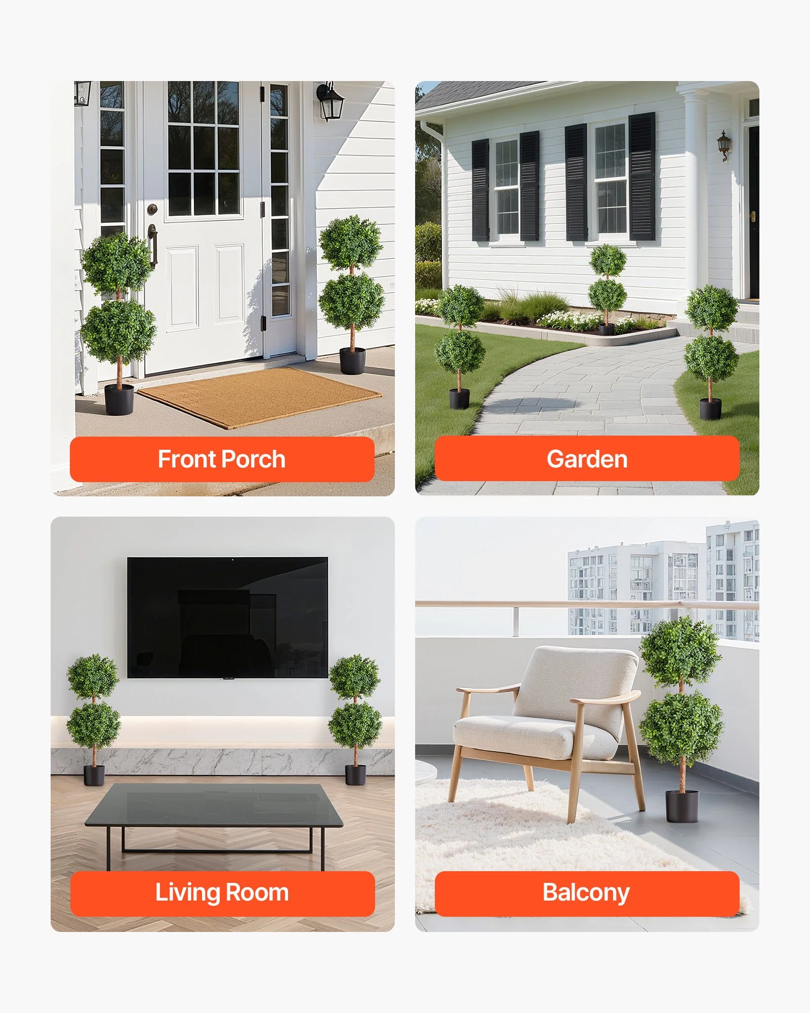 Crafted from premium PE material, these topiary trees withstand sun, rain, and wind without fading or deforming. Ideal for both indoor and outdoor spaces, offering long-lasting greenery with zero upkeep