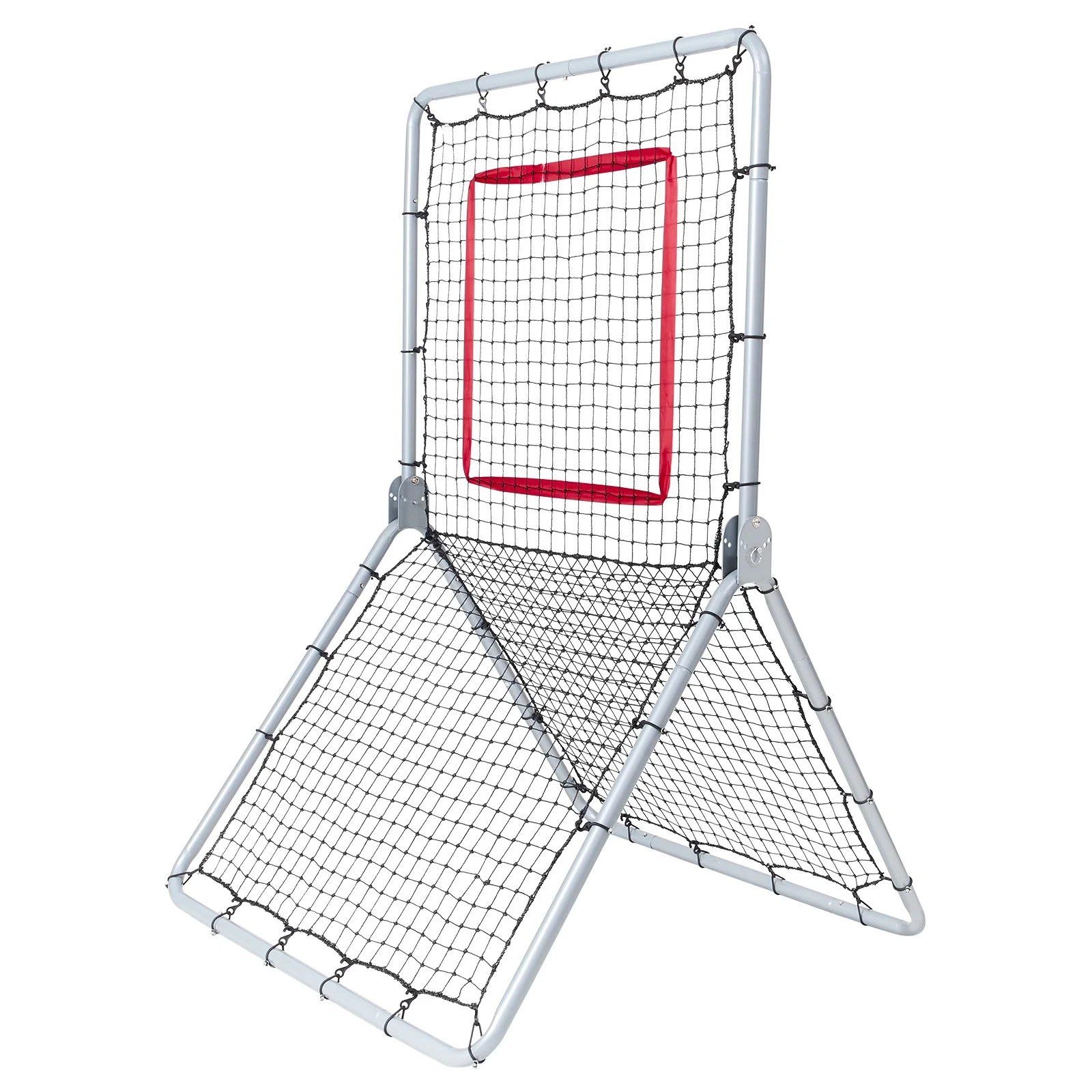 The baseball net features 5 adjustable angles (0°, 40°, 62°, 84°, 106°) and target area settings, equipped with a 45-strand high-density PE rebound net for superior bounce. It helps practice catching and throwing skills at different angles, including high balls, line drives, and grounders.