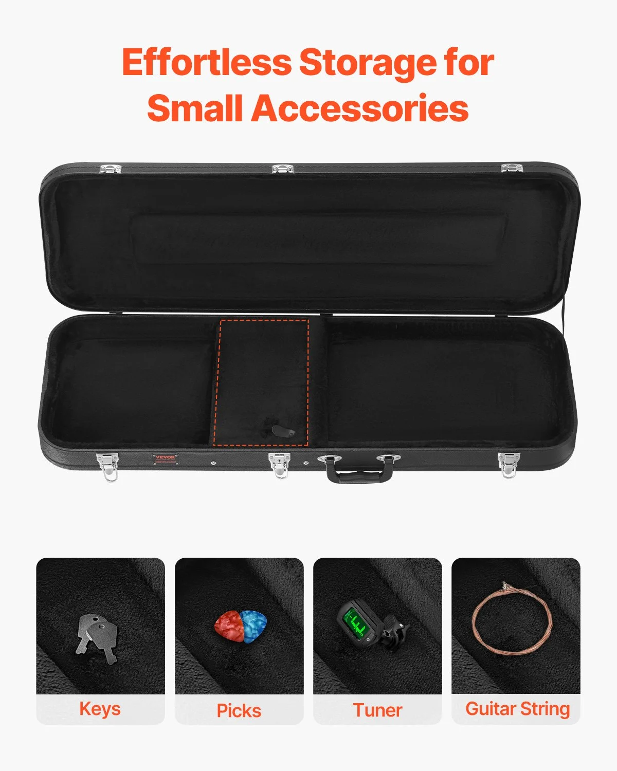 The interior of this hard shell guitar case is designed with intimate accessory compartments. It is convenient for storing accessories such as picks and strings, so that your bass accessories are well organized.