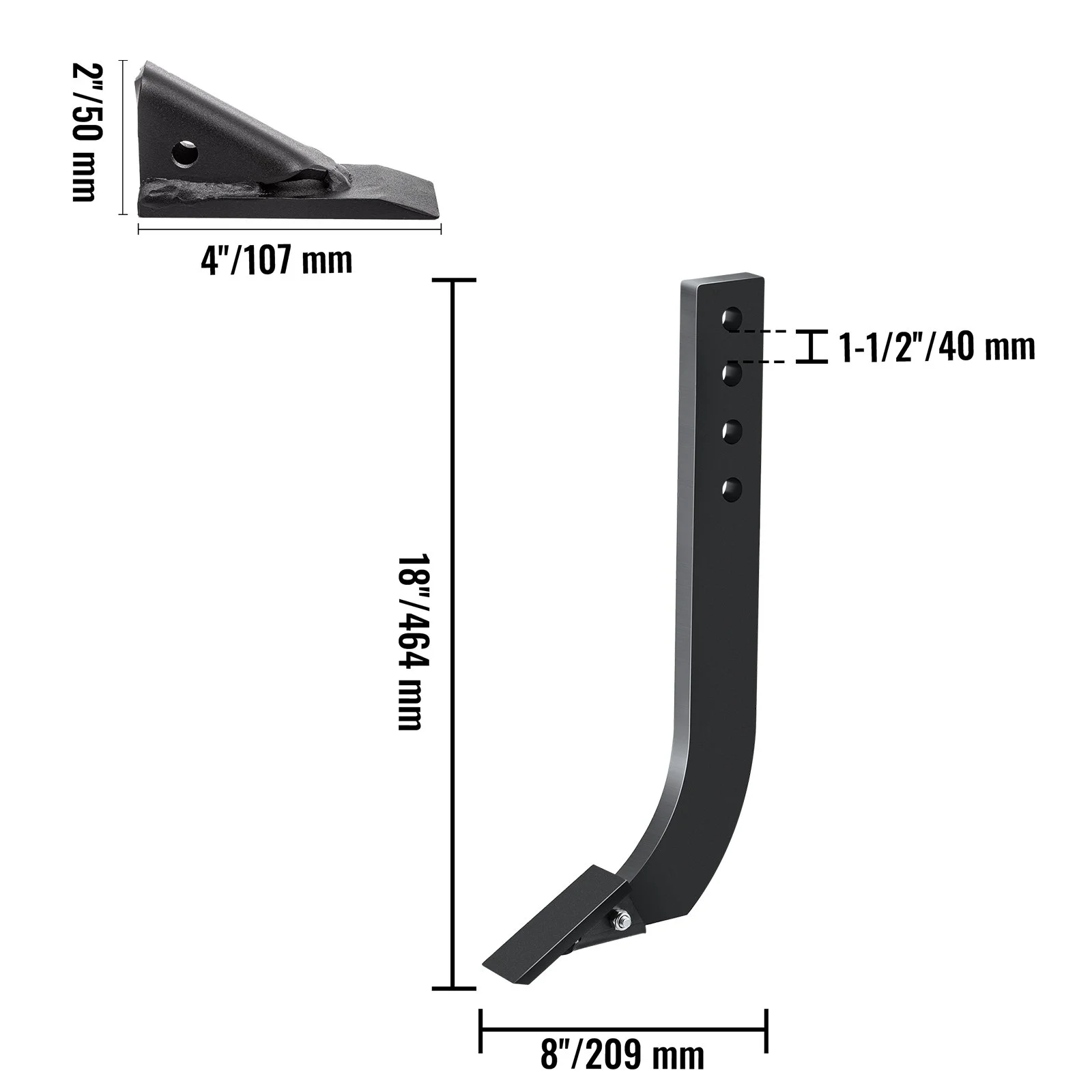 1-1/2". Hole Diameter: 1/2''. Each shank has four-position adjustment holes that pin to the reinforced frame for maximum efficiency. You could adjust it according to your specific needs.