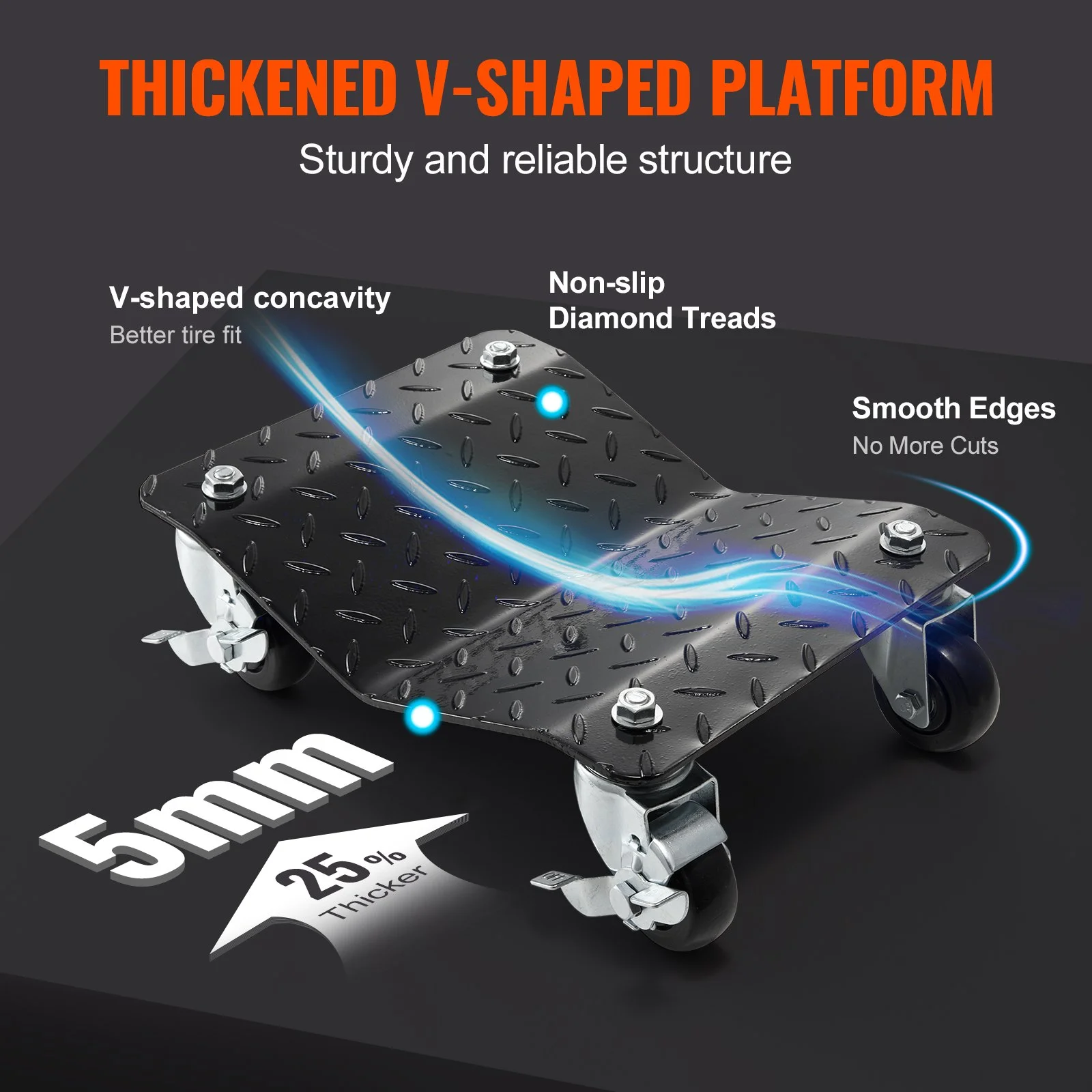 Equipped with 3-inch/76 mm rolling bearing universal casters and locking casters, the wheel dolly ensures smooth and secure movement. You have complete control over the direction and positioning of your vehicle. The foot brake lets you instantly lock the dolly, providing convenience and security during maintenance work.