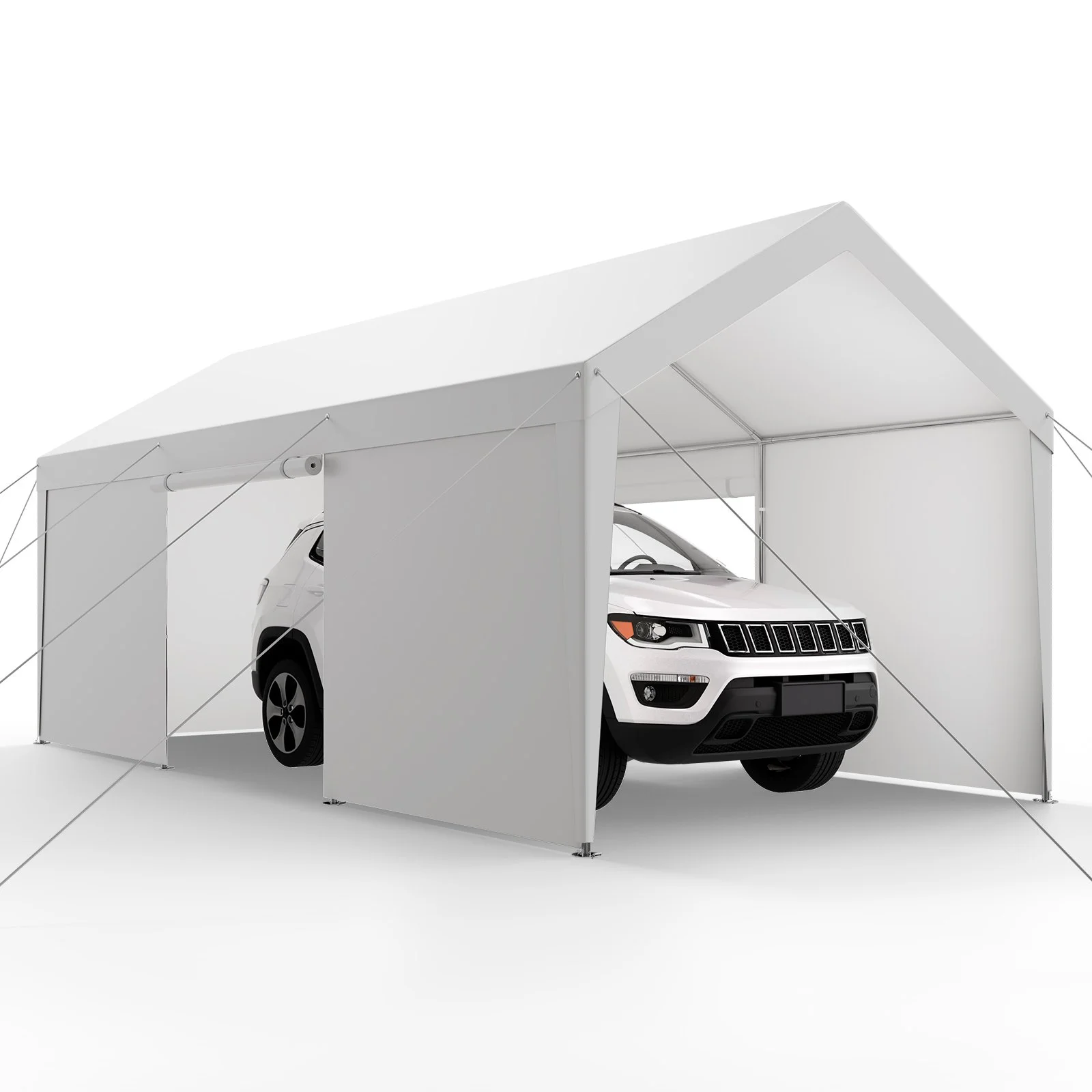 The carport features a double-coated PE tarp that is UV-resistant and waterproof, providing long-term protection for your car, RV, or outdoor equipment from rain, strong sunlight, and natural elements like dust.