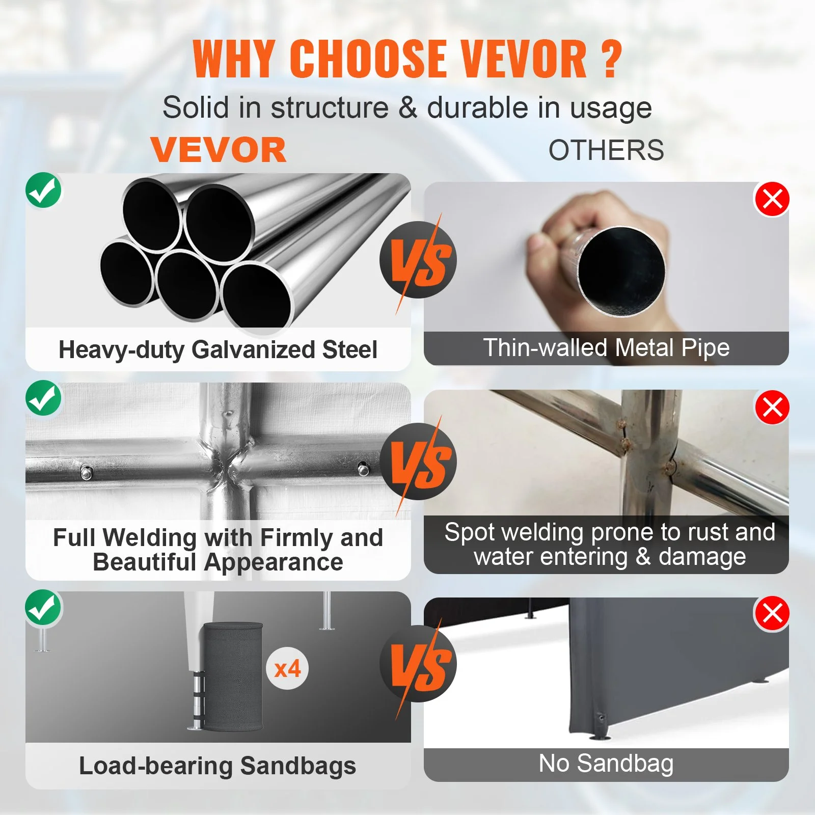 The 10 x 20 FT spacious car canopy provides ample space for your vehicles, boats, cargo, etc. It's also perfect for outdoor activities such as parties, weddings, and commercial exhibitions. Upgrade your parking space with our spacious carport tent!