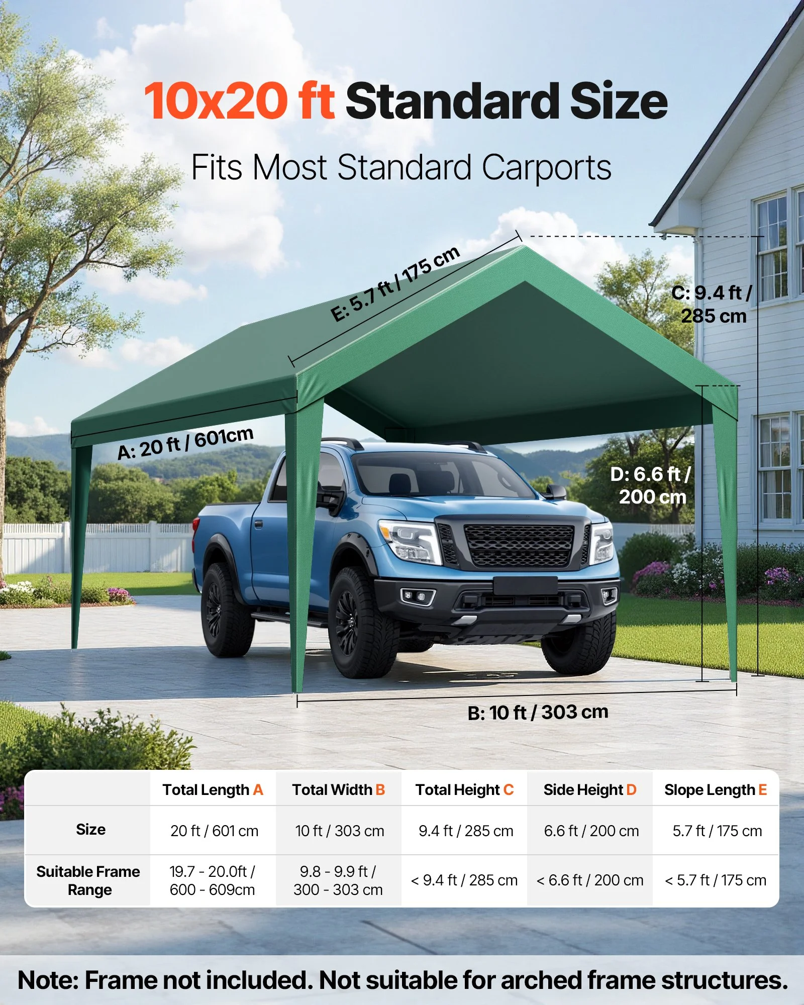 This 10×20 ft carport replacement canopy cover designed to fit most standard instant carport frames. No cutting, trimming, or extra adjustments required. It is ready to install right out of the box.