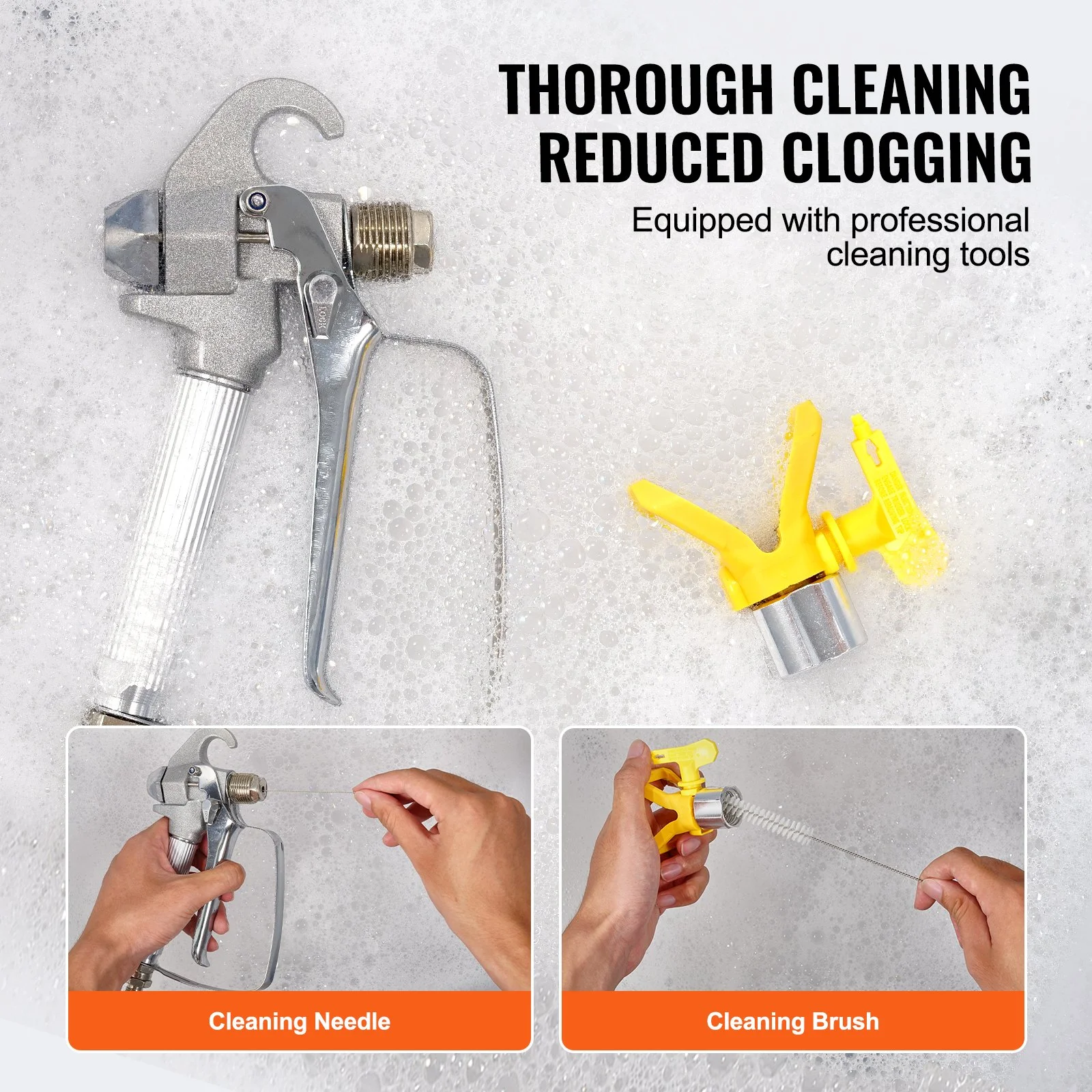 Our diaphragm spray paint machine includes cleaning needles and brushes to clean both the exterior and the difficult-to-reach areas inside the nozzles and pipes. The extension rod allows easy access to high or distant spraying areas, enhancing convenience and safety.