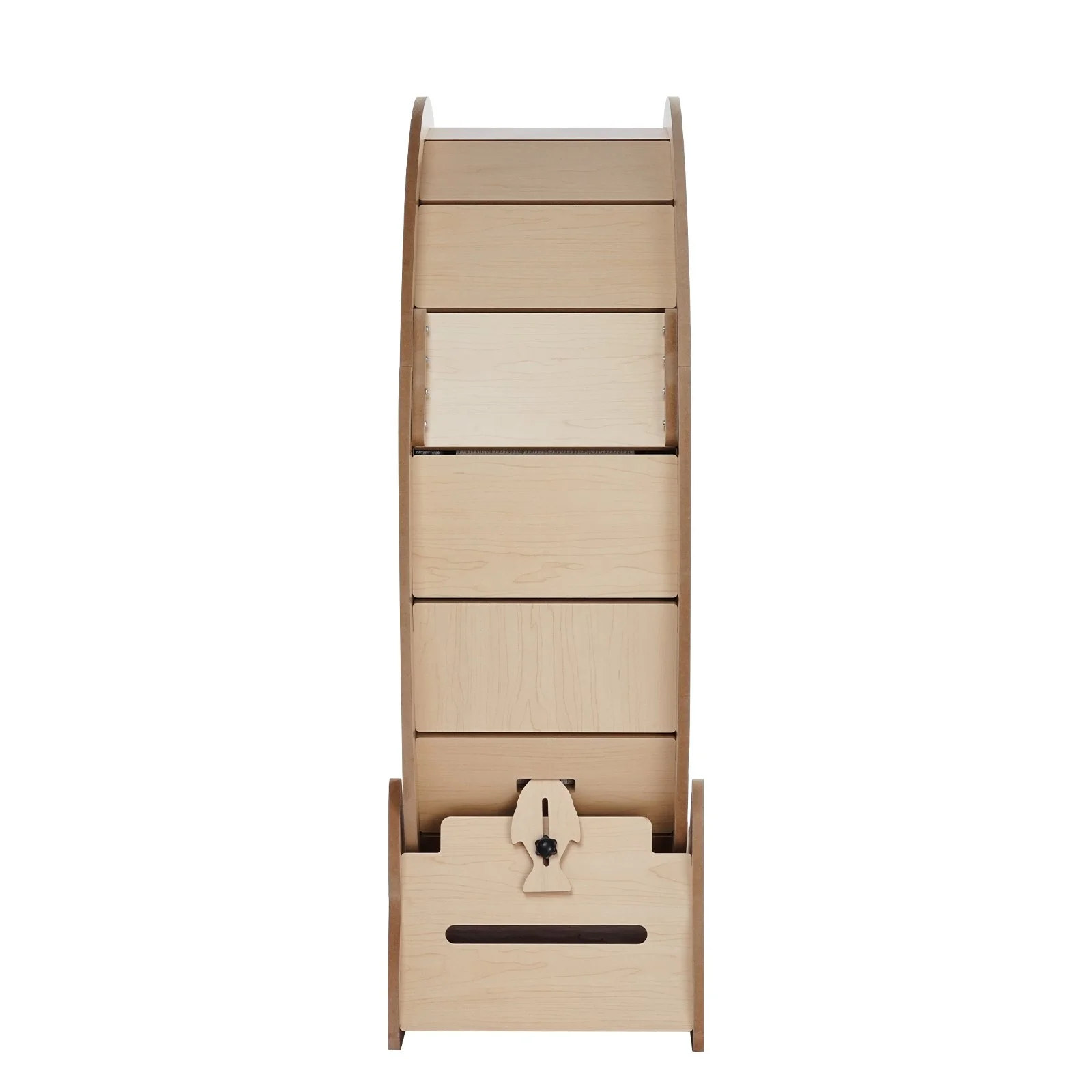 This wooden cat exercise wheel is made from solid wood board with a 0.5"/12 mm thickness and an ultra-narrow 0.2" gap to prevent paw injuries. The widened base and running track deliver added stability. It offers many health advantages to cats, such as mitigating obesity risks and enhancing joint flexibility, ensuring their contentment.