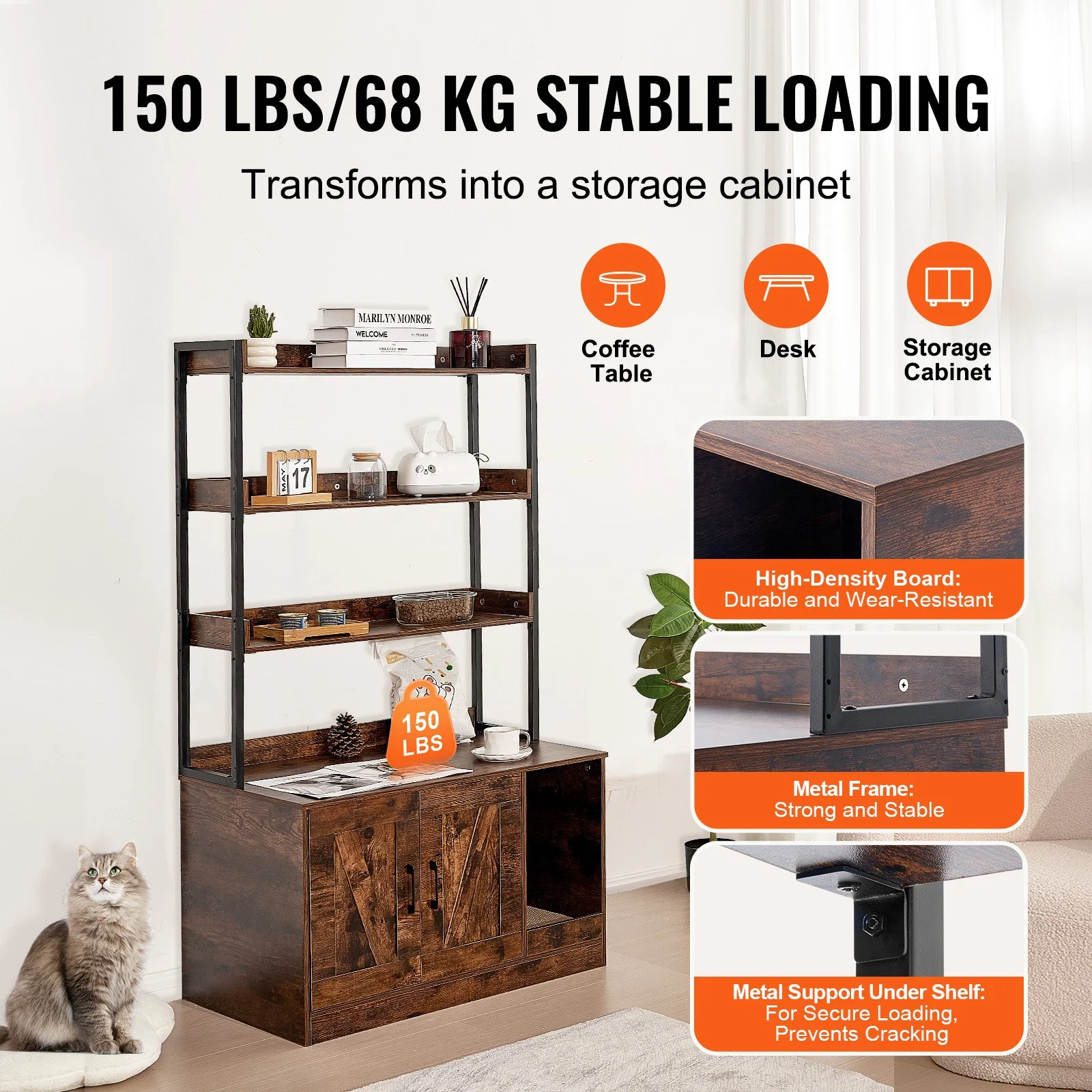 With 3 upper shelves, a wide litter box top and 2 doors, VEVOR 33.5"L x 19.3"W x 58.7"H hidden litter box furniture provides ample room for most of litter boxes, cat food, toys, magazines, photo frames, etc. Suitable for small, medium, or large cats, it ensures a comfortable space for leisure and potty time.