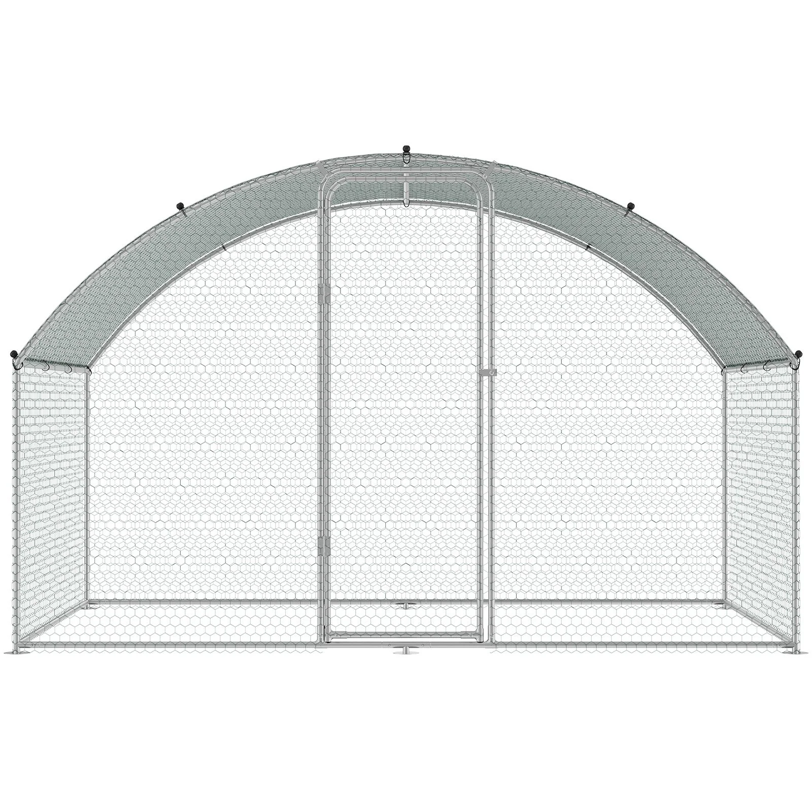 Crafted from galvanized steel pipes, and rigorously tested against salt spray, this large chicken coop withstands harsh weather conditions like rain, wind, and sun exposure, ensuring long-term stability and safety.