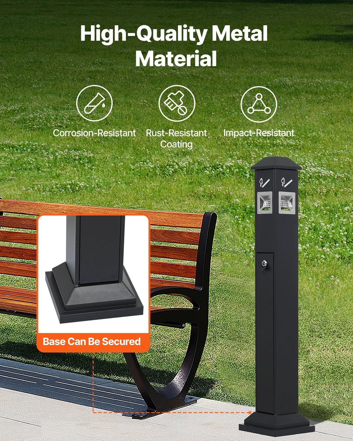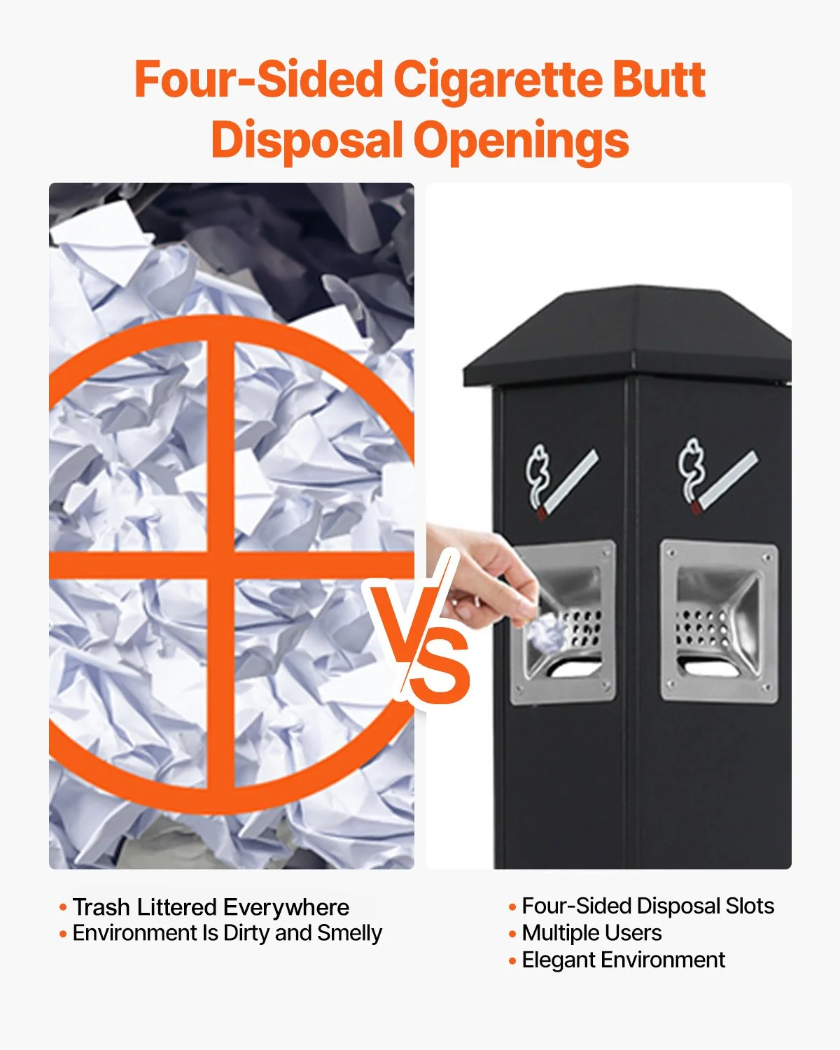 Whether it's your garden, office, hotel, or street corner, this outdoor standing ashtray fits seamlessly into any environment, helping to reduce clutter and keep spaces looking tidy and attractive, while providing a convenient cigarette disposal solution.