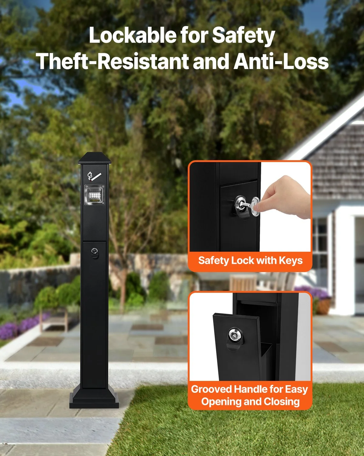 The rainproof top keeps everything dry and fresh, while the built-in security lock and recessed handle make maintenance simple and theft prevention a breeze. This smoking cigarette butt receptacle is built to keep your environment secure and tidy, no matter the weather.