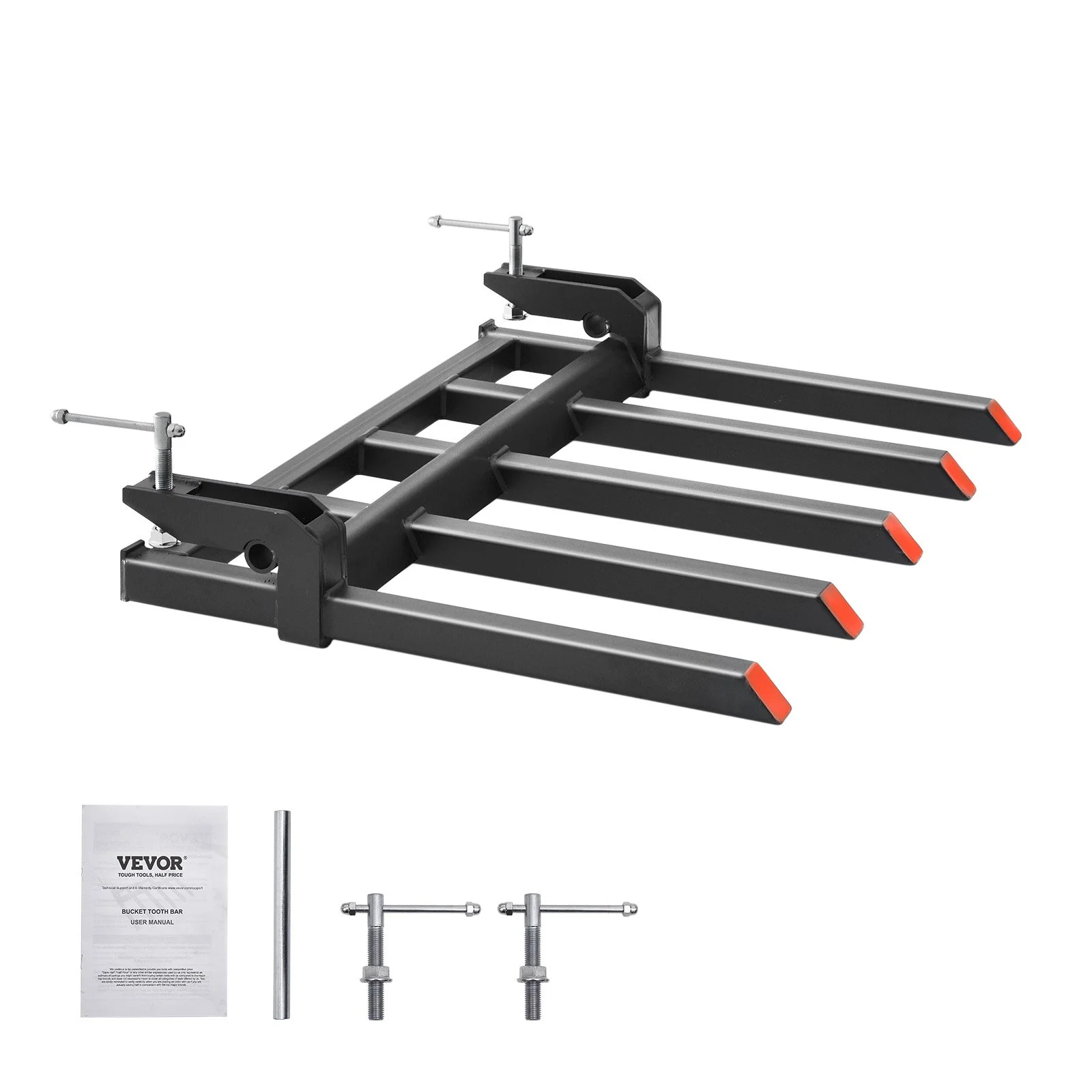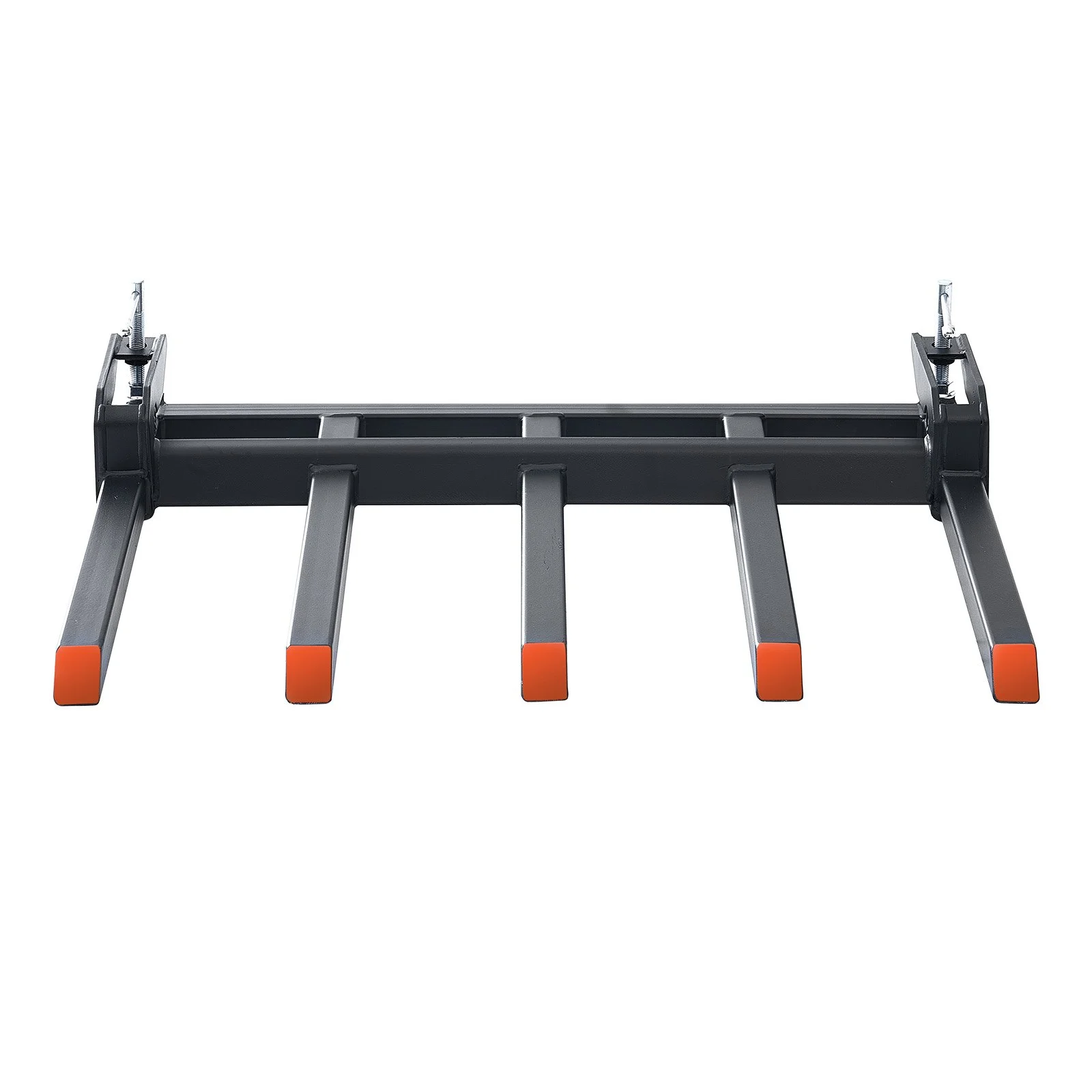 Compared with most of the clamp on debris forks, our upgraded debris forks are thickened to 10mm steel at both ends with 2600 lbs maximum load-bearing capacity to breeze through the toughest bucket transportation, loading, and unloading jobs. Handle all kinds of high-intensity work easily!
