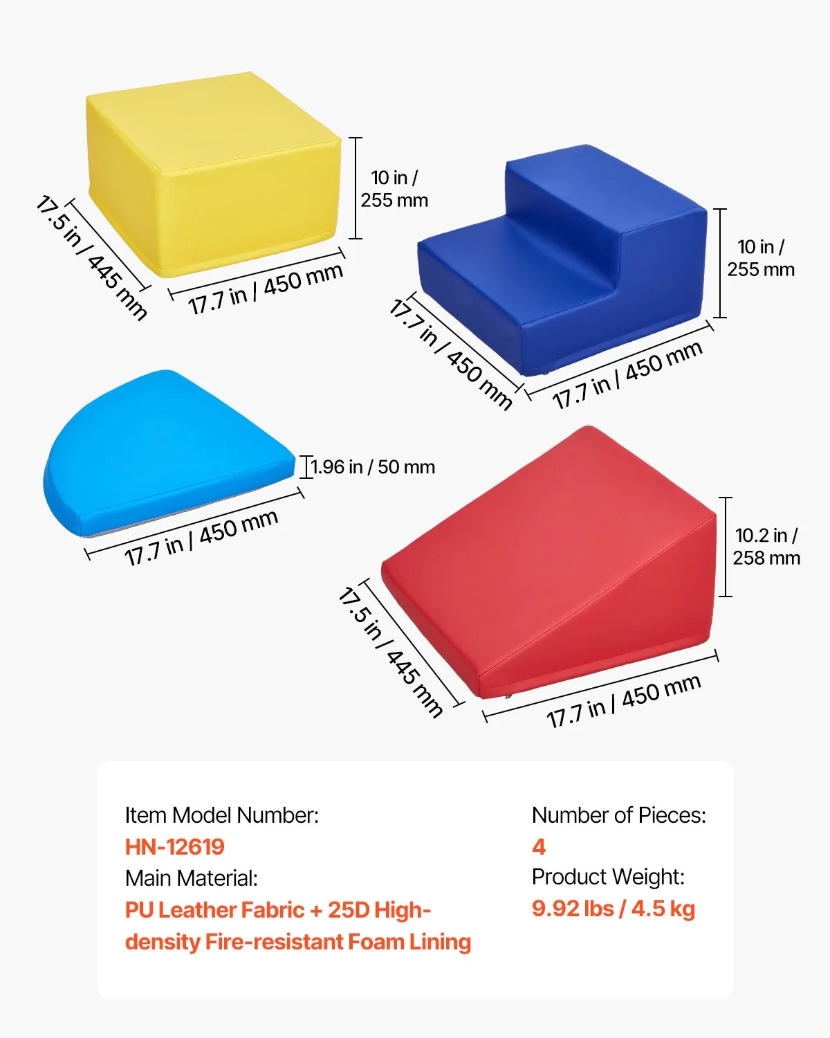 The soft, breathable PU fabric provides excellent waterproof and stain-resistant properties. Simply wipe away dust and stains with a damp cloth (avoid bleach). The lightweight design of the soft climbing blocks allows the blocks to be stacked and stored away, saving space when not in use.