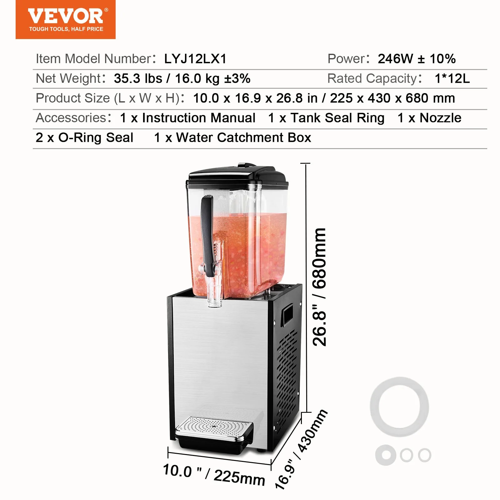 This commercial beverage dispenser has a tank capacity of 12 L, accommodating a large volume of beverages. It features an upgraded wide diameter dispensing spout, allowing smooth and easy dispensing of drinks with small particles such as coconut juice and fruit pulp. Equipped with a rubber sealing ring to prevent beverage leakage.