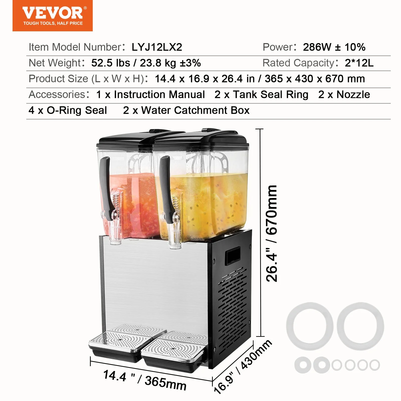 This commercial beverage dispenser has a tank capacity of 12 L, accommodating a large volume of beverages. It features an upgraded wide diameter dispensing spout, allowing smooth and easy dispensing of drinks with small particles such as coconut juice and fruit pulp. Equipped with a rubber sealing ring to prevent beverage leakage.