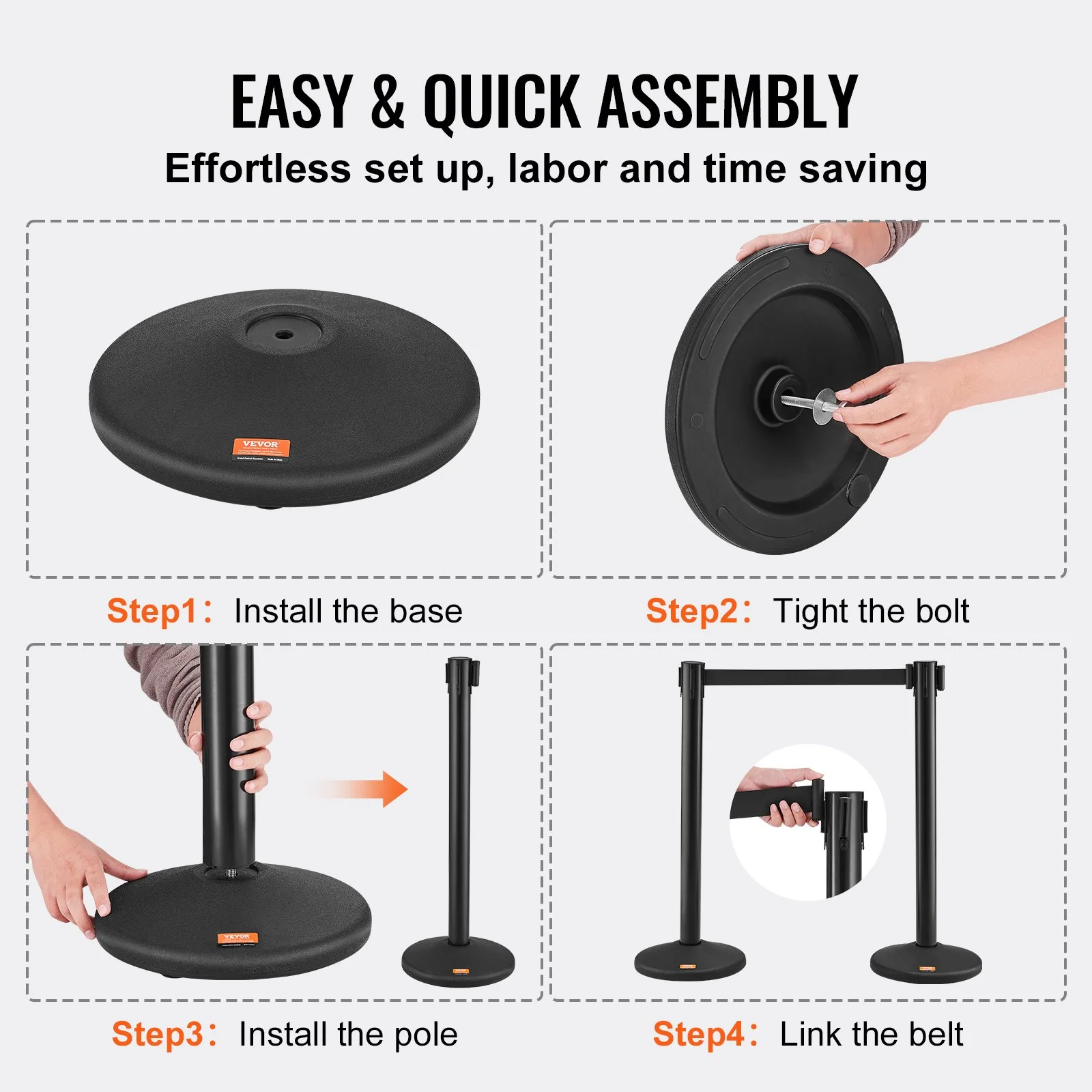 VEVOR crowd control stanchions- Your top choice for effective space management! Crafted with high-quality PVC posts (1.8mm wall thickness) and sturdy plastic bases, it not only ensures reliable crowd and queue control but also stands up to extended use.