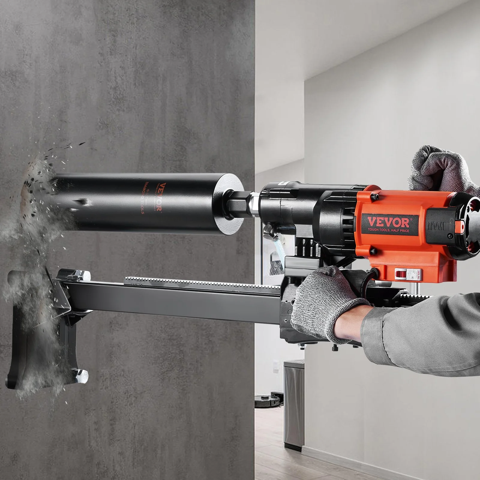 Adapts up to 8-inch drill bits. Our standup core drilling machine with stand can perform wet and dry two modes drilling, and you can feel assured of accuracy when boring holes in a variety of surfaces with a 8 in / 20 cm diameter hole capacity. Attention: a industrial-grade 4.25in core bit is only included.