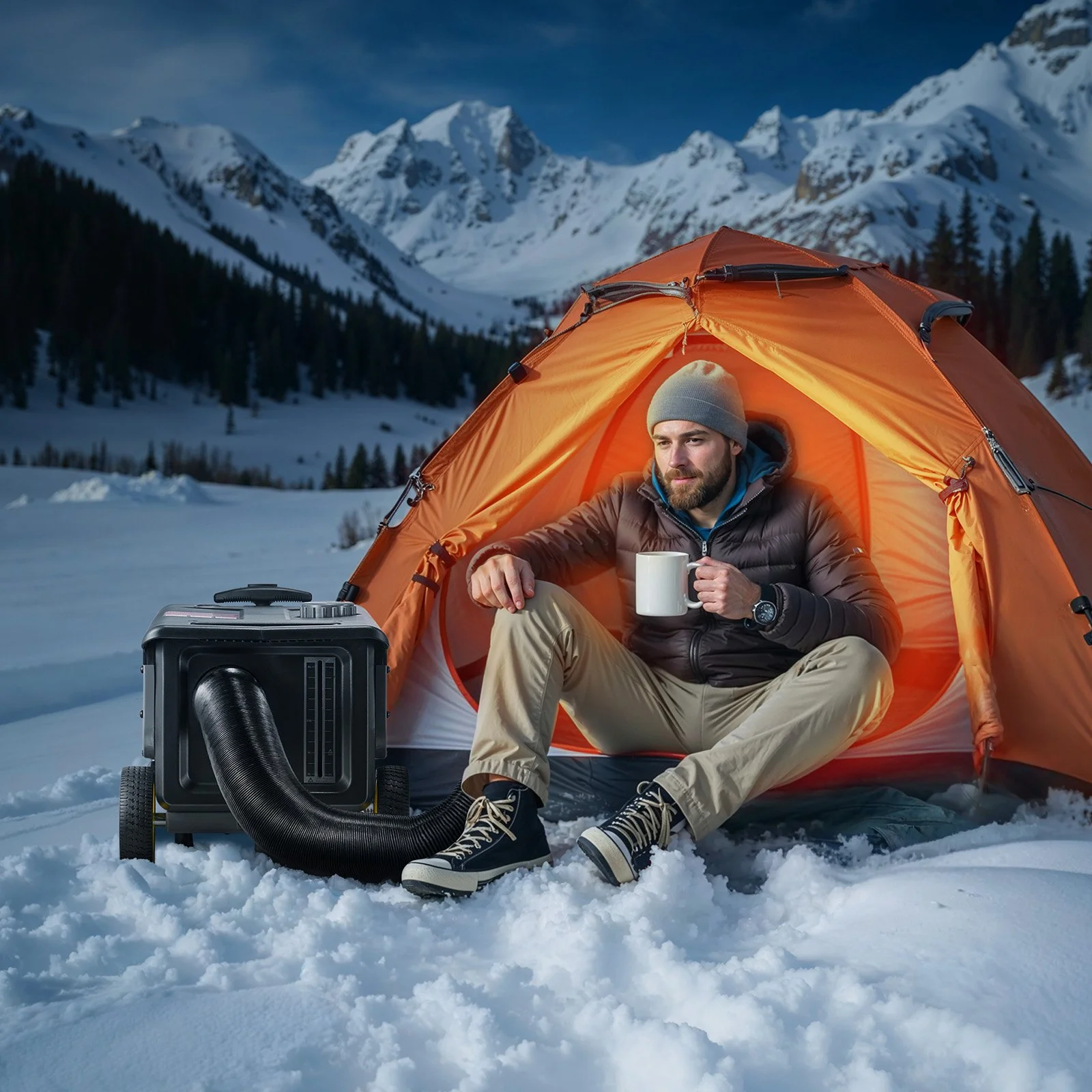 Our diesel parking heater is compatible with RVs, trucks, SUVs, vans, tents, and garages. It runs on 12V/24V DC or household AC power. High-altitude mode supports 9,842–18,044 ft for winter travel and everyday use
