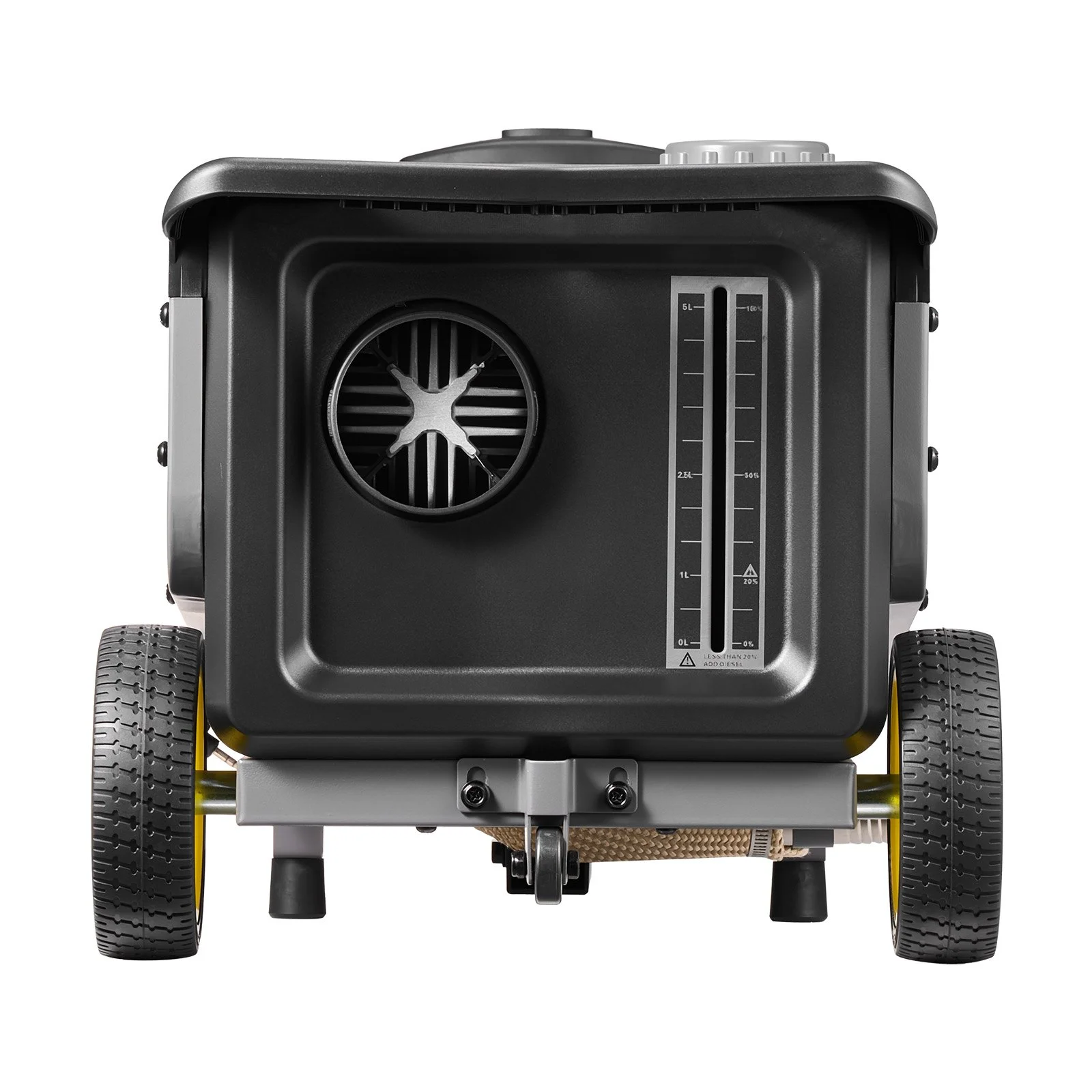 This portable diesel heater features a quiet, energy-saving fuel pump and burns 0.05–0.09 gal/h with over 90% efficiency. The 1.3 gal fuel tank supports all-night heating without refueling, reducing fuel use and energy waste