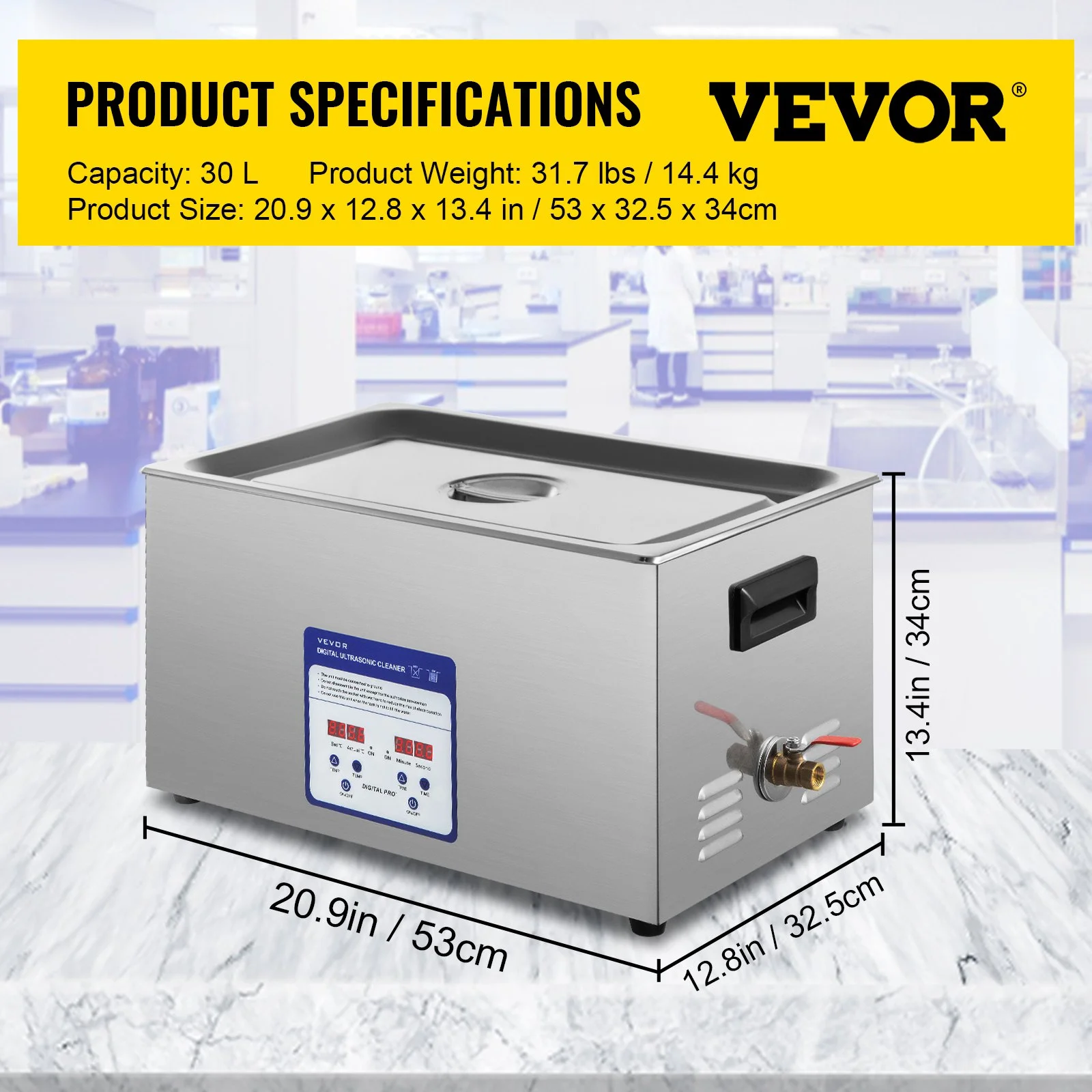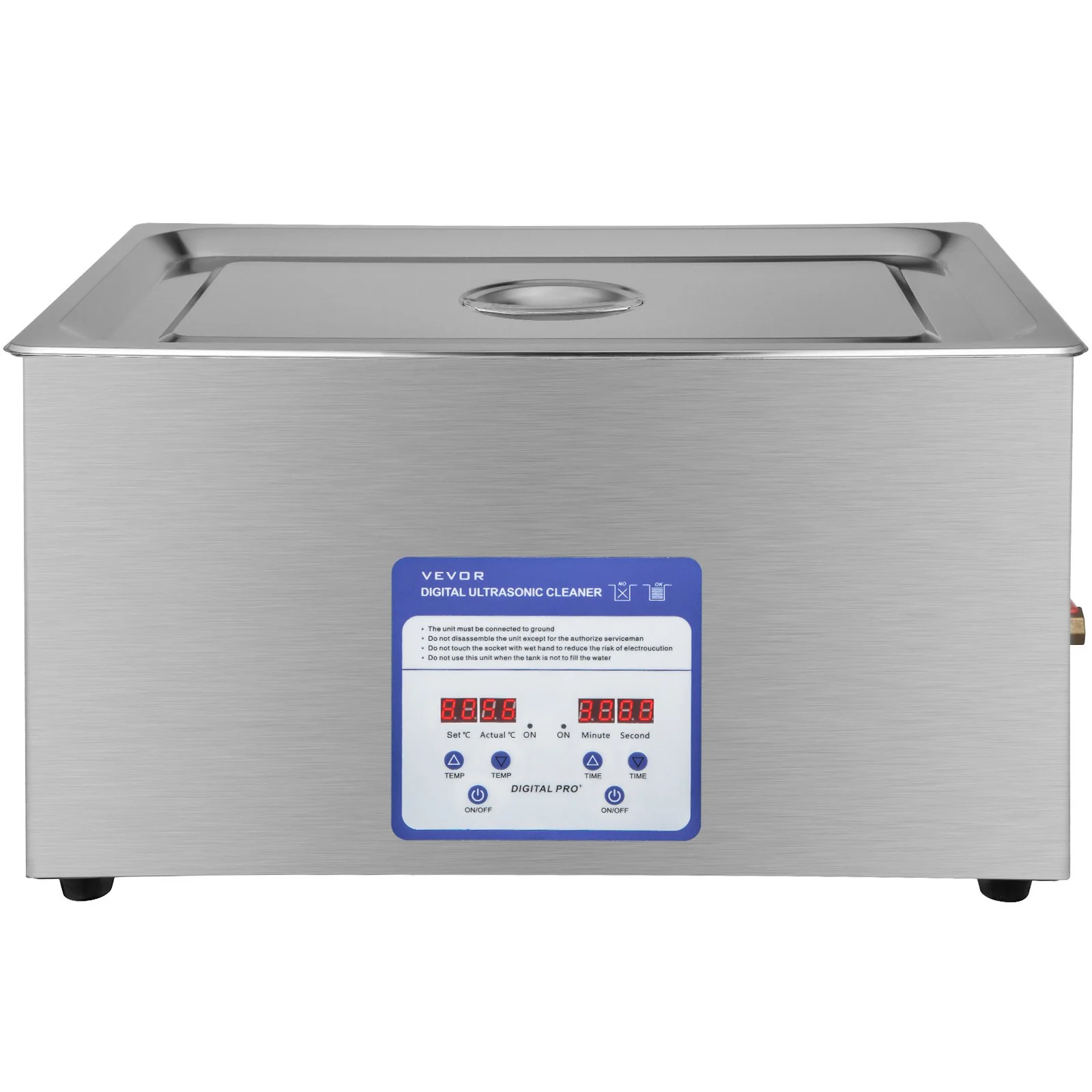 Tank Size: 30L/7.9 Gal; Ultrasonic Power: 600W; Heating Power: 500W. This ultrasonic cleaner machine is made of sturdy 316 & 304 stainless steel with a basket. Adding the Mo element, SUS316 has more excellent high-temperature strength, better glossiness & tightness, and longer service life than SUS304, making the device usable under harsh conditions.