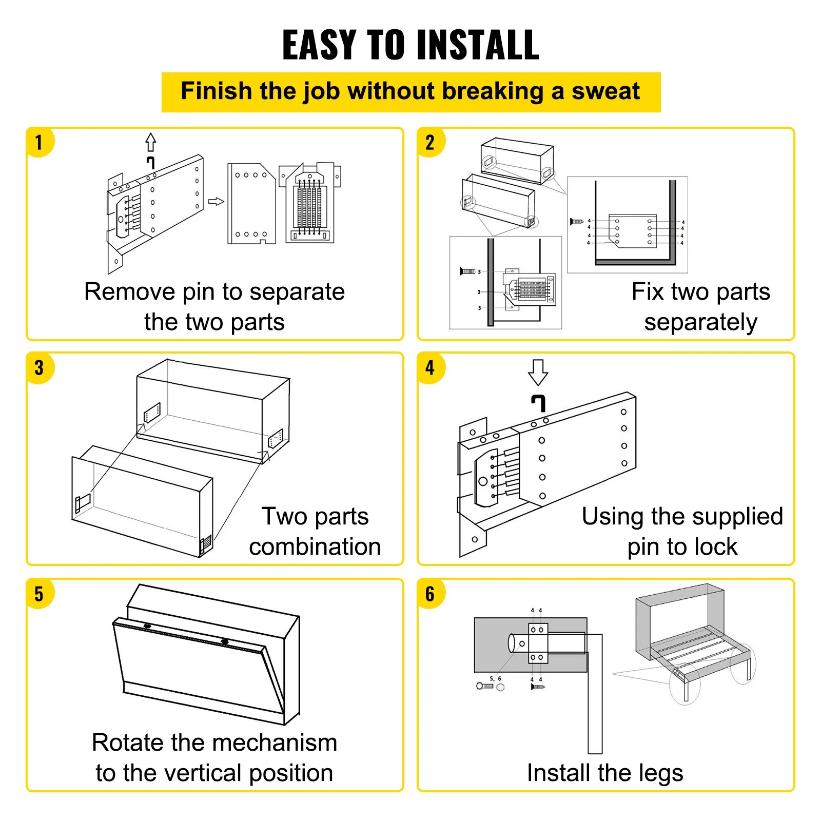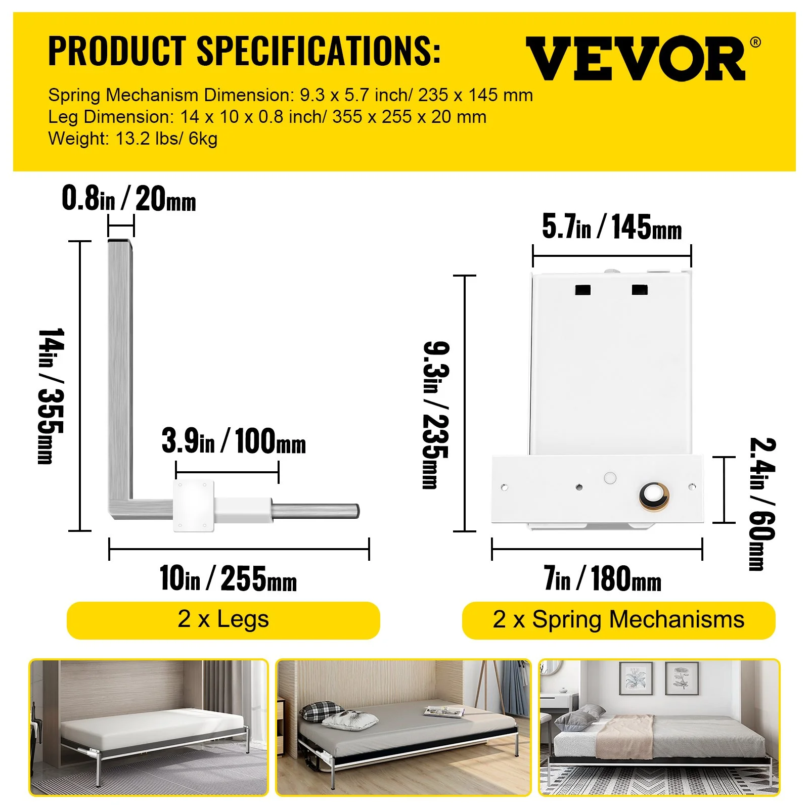 There are 5 large springs in the kit, which support the invisible bed to fold up and down, which is strong enough and not easy to break. One person can effortlessly fold-out or up the bed with a bearing capacity and better pull strength.