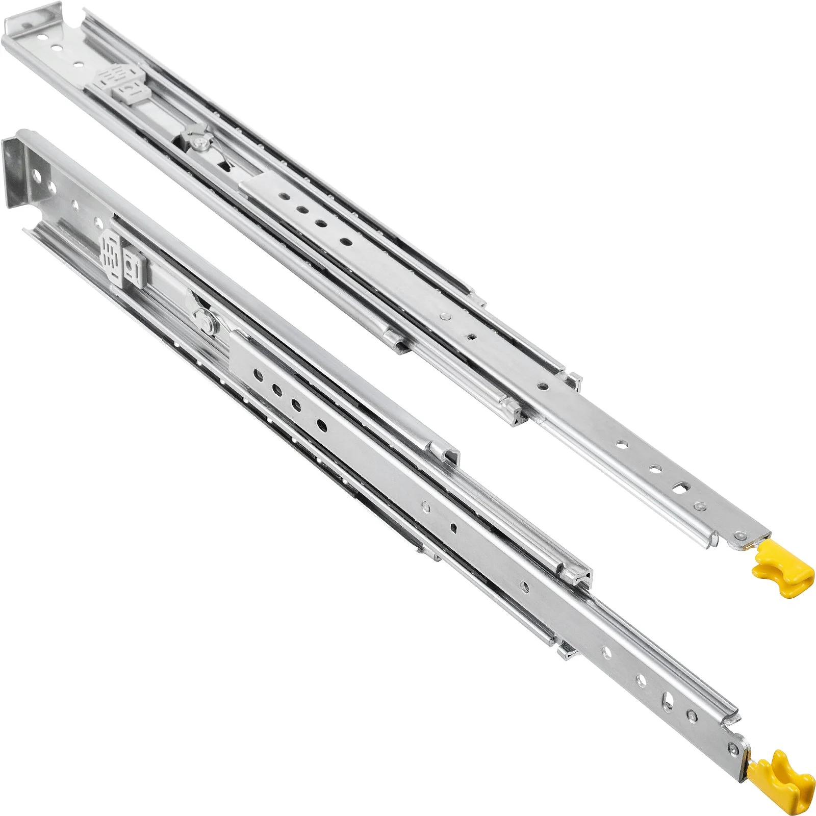 The heavy-duty drawer slides can be installed on the side of the cabinet or machine parts. All screws and bolts are included for effortless installation. Ideal for new construction, remodeling, and replacement projects, such as industrial drawers, commercial equipment, and retrofitted vehicles.