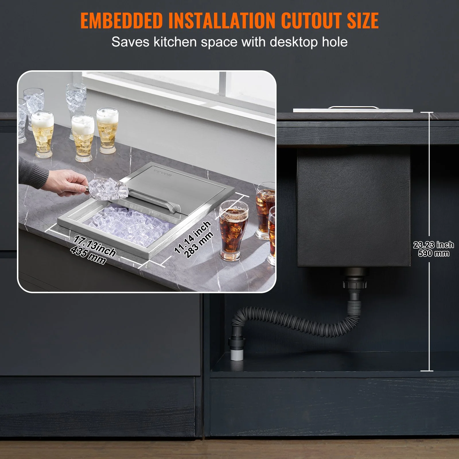 The ice storage chest can be installed in beverage stores, hotels, or bar counters. Also suitable for indoor and outdoor kitchen counters. The embedded installation saves significant space.