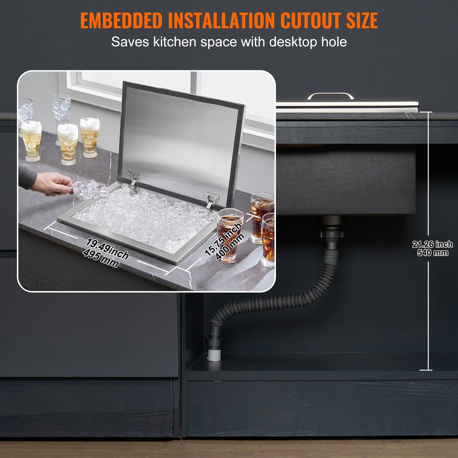 The ice storage chest can be installed in beverage stores, hotels, or bar counters. Also suitable for indoor and outdoor kitchen counters. The embedded installation saves significant space.