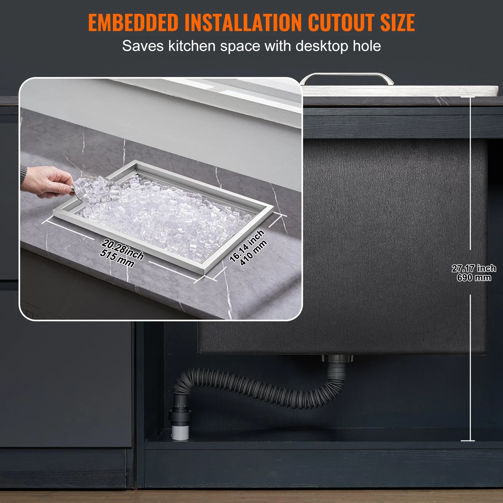 The ice storage chest can be installed in beverage stores, hotels, or bar counters. Also suitable for indoor and outdoor kitchen counters. The embedded installation saves significant space.