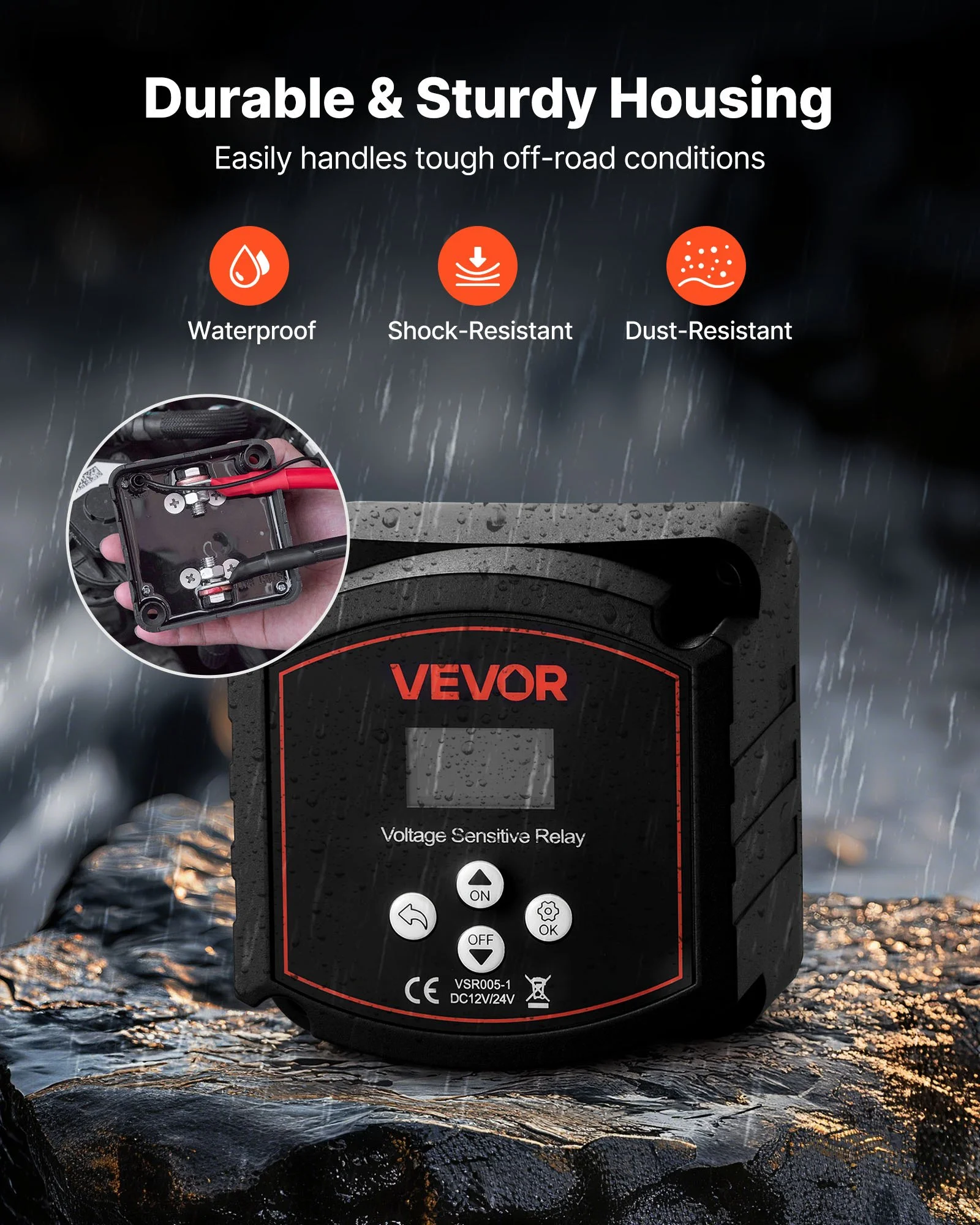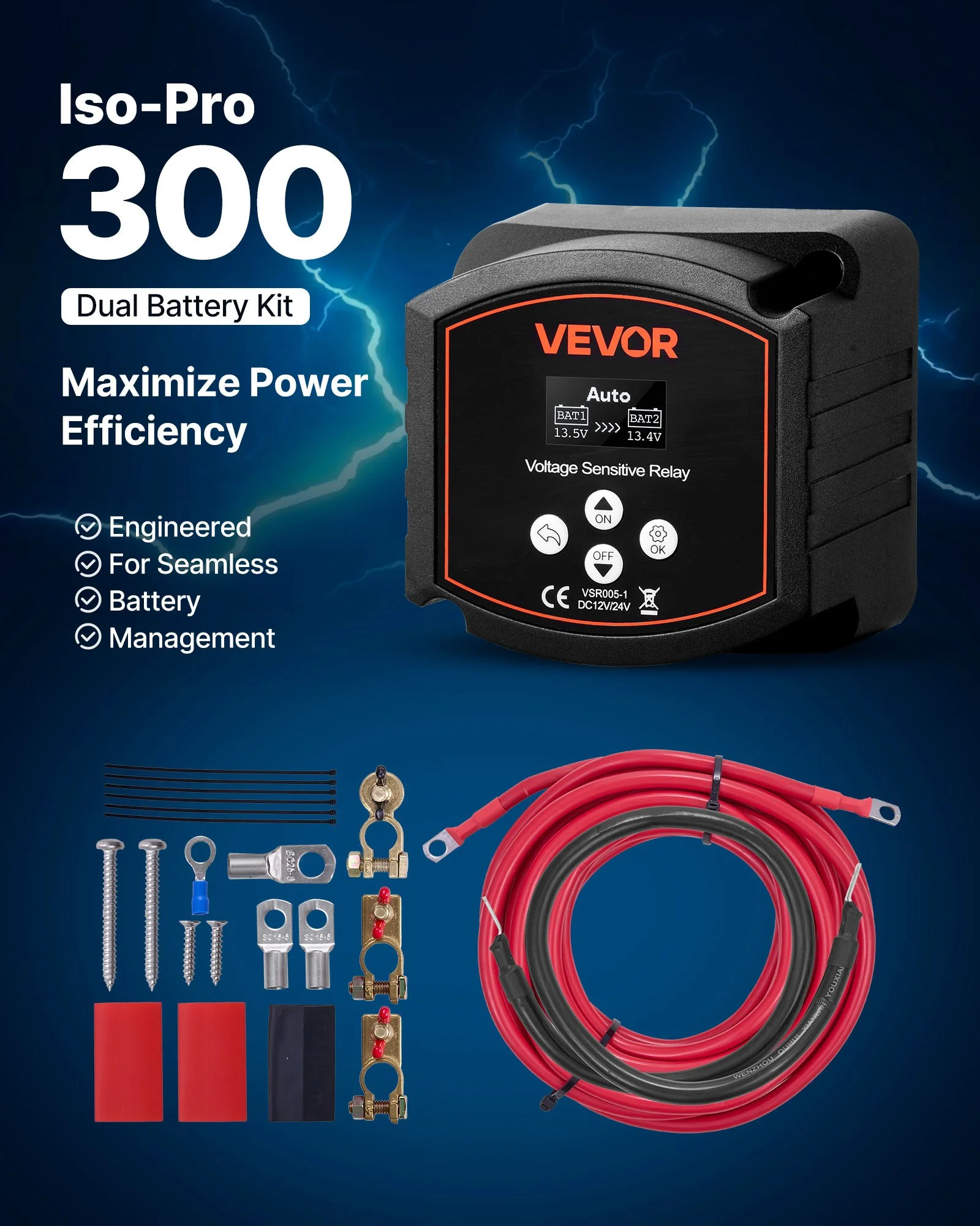 With 300A high current, our dual battery isolator kit is the optimal charging solution for high-capacity dual-battery systems. It can adjust start-stop voltage, compatible with lithium, lead-acid and other battery types