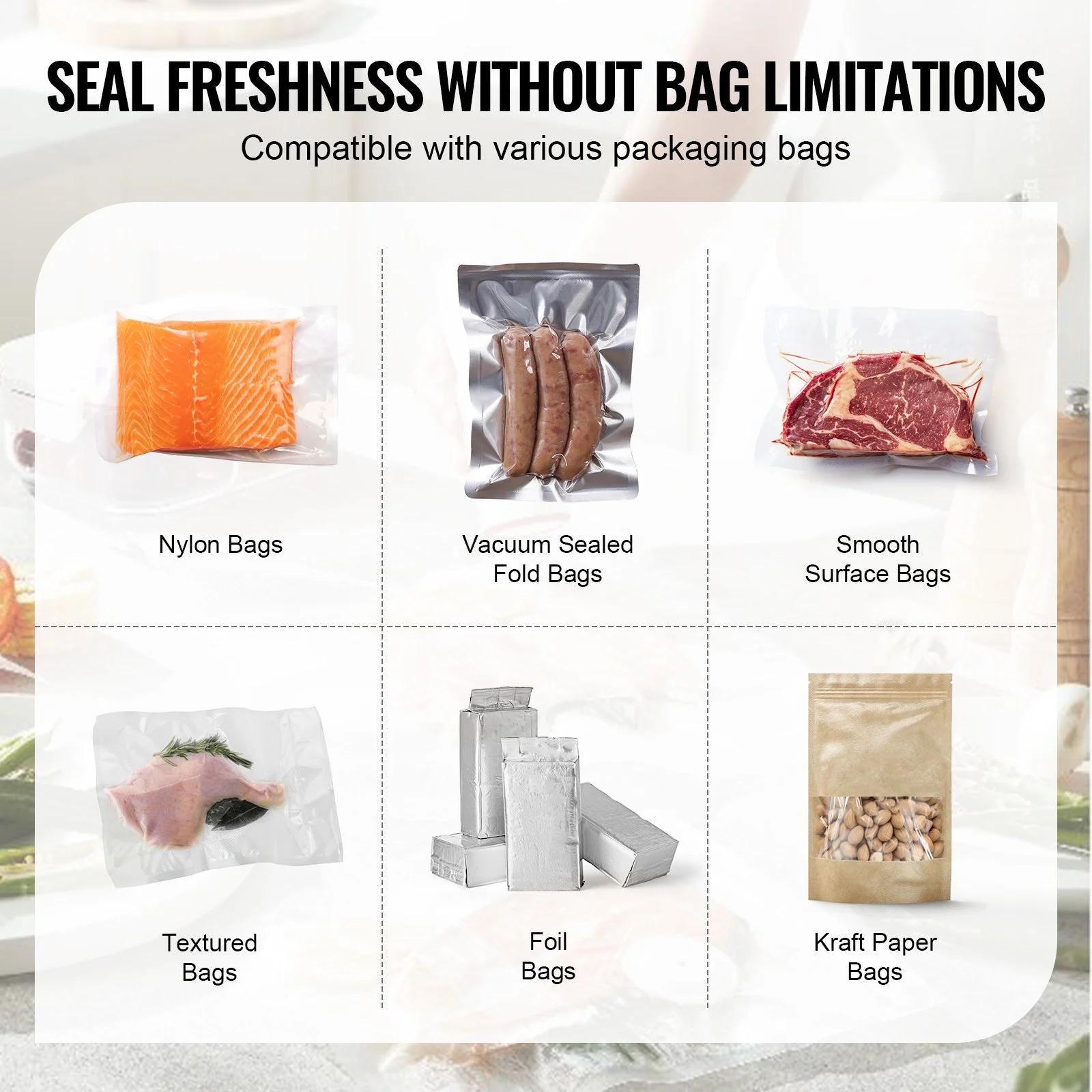 Seal bags up to 15.7 in/400 mm with ease! Our commercial vacuum sealer provides a broader sealing range, allowing you to easily handle bags of different sizes. With an advanced pressure bar design, the operation becomes more convenient, ensuring reliable sealing every time. 2 sealing bars handle multiple tasks simultaneously. Whether it's small or large bags, it seals perfectly, maintaining the freshness and taste of your ingredients.