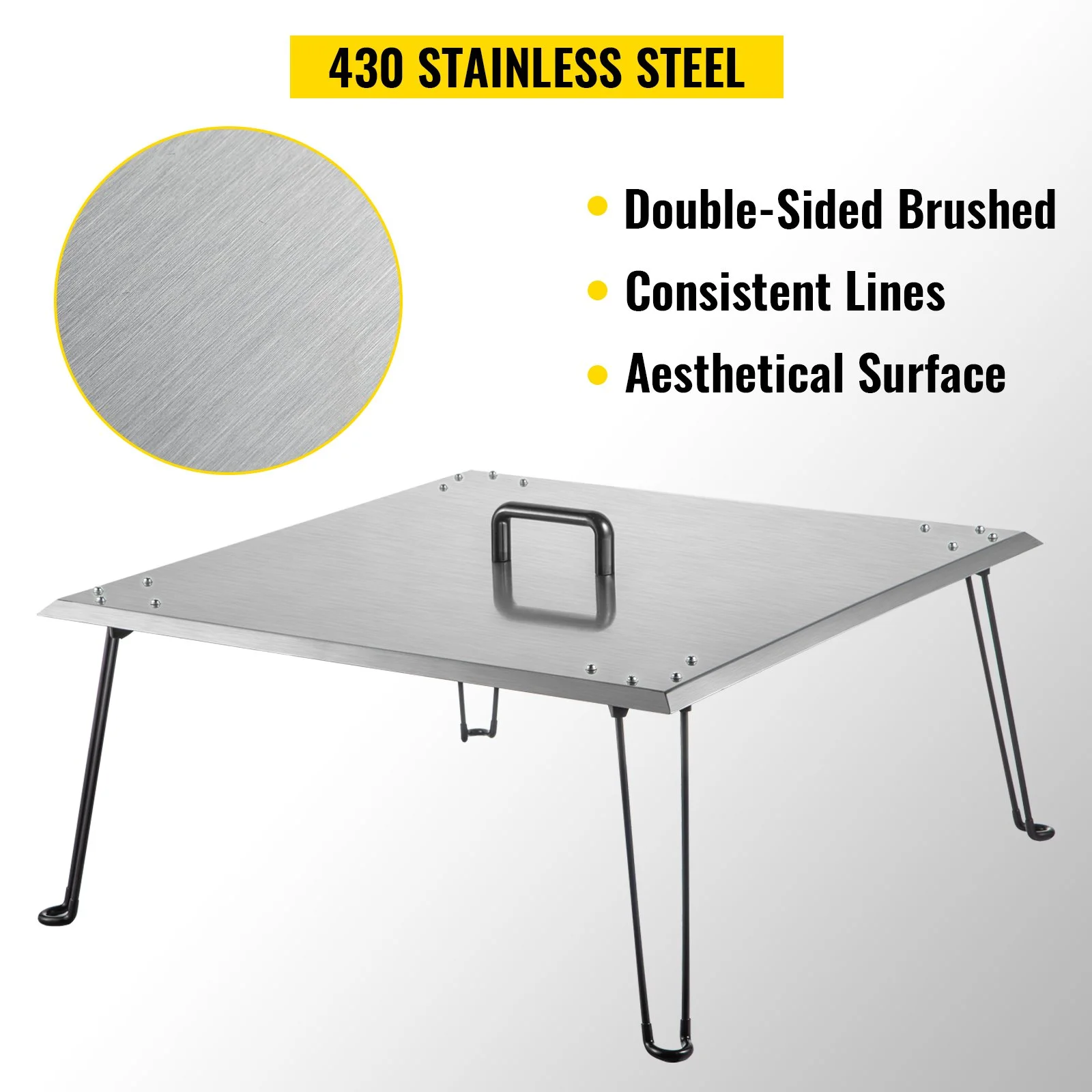 The fire pit heat deflector comprises 430 stainless steel, featuring outstanding hardness and durable performance. It will withstand high temperatures and won't be deformed easily. Both sides of the cover are brushed and have smooth surfaces with consistent lines. The product can be used for many years.
